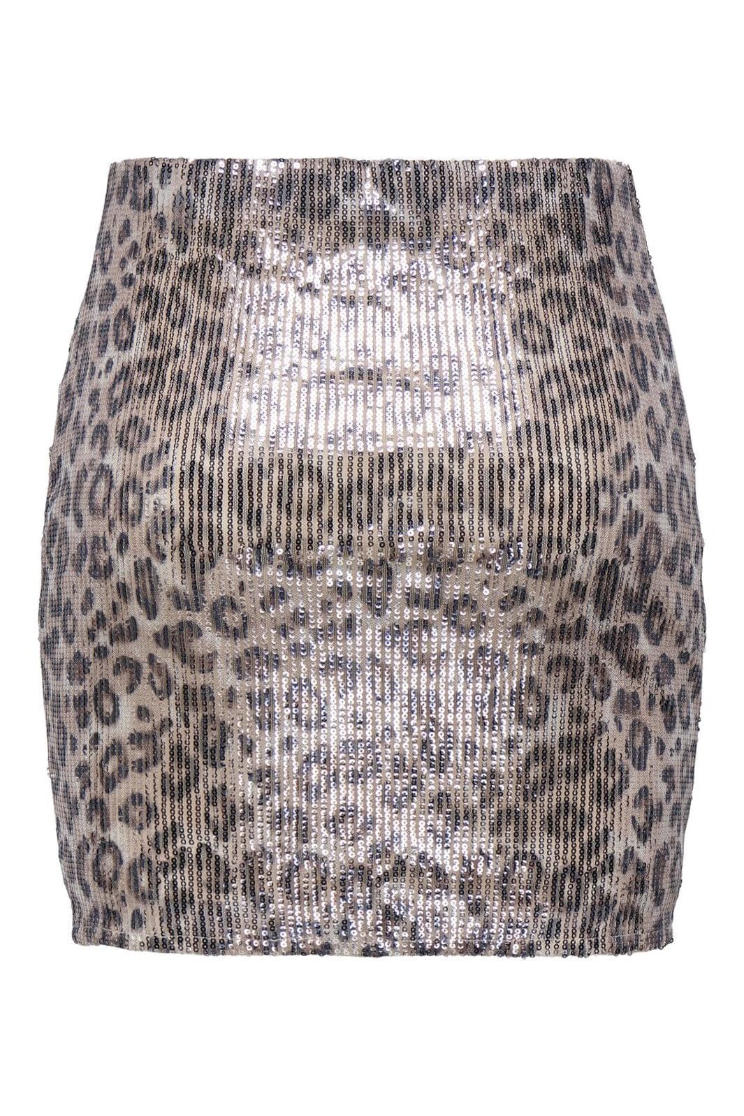 JDY Jdyleona Sequins Mini Skirt Färg: 4840290 Brown Rice Brown Leo Sequins