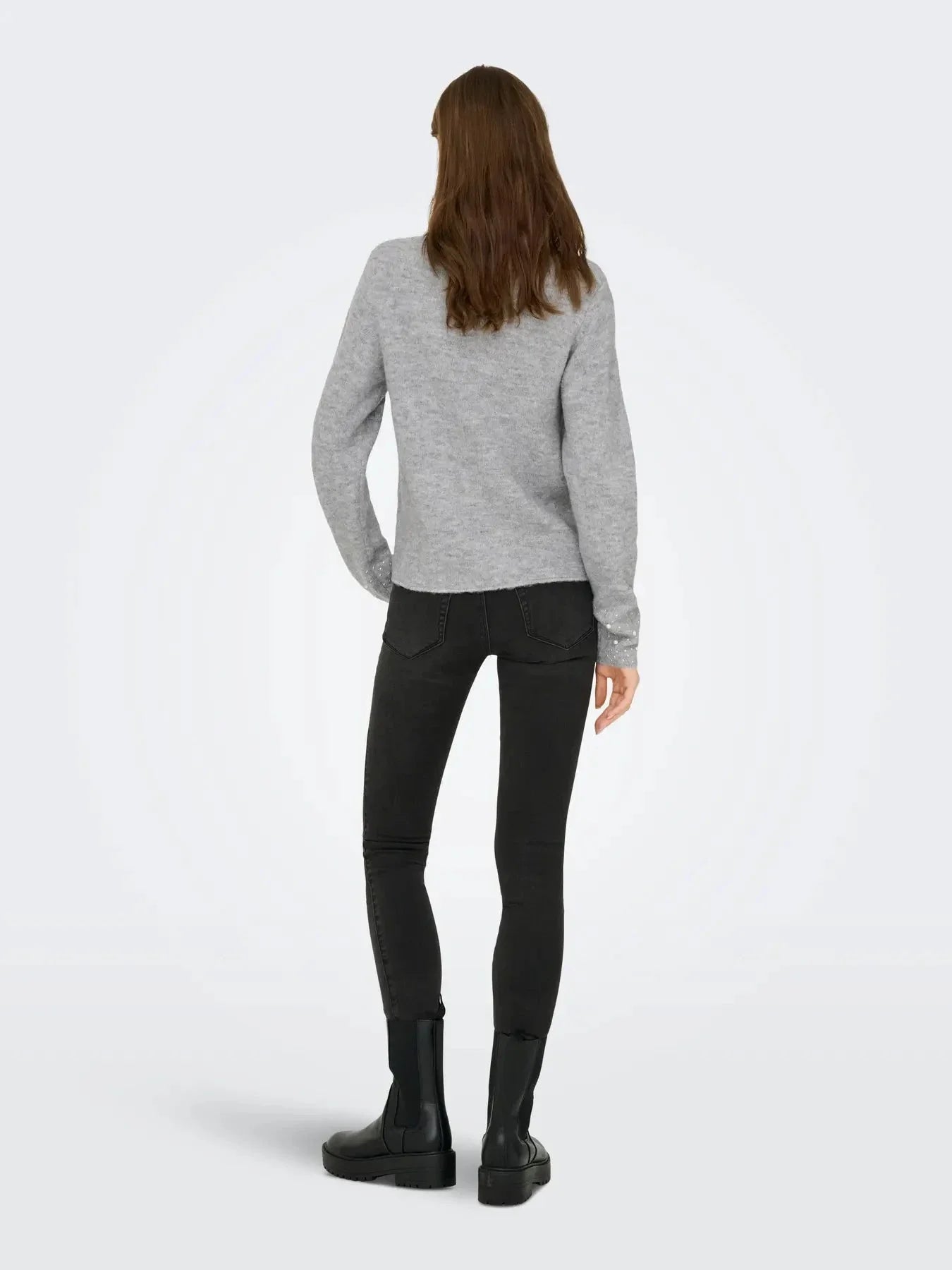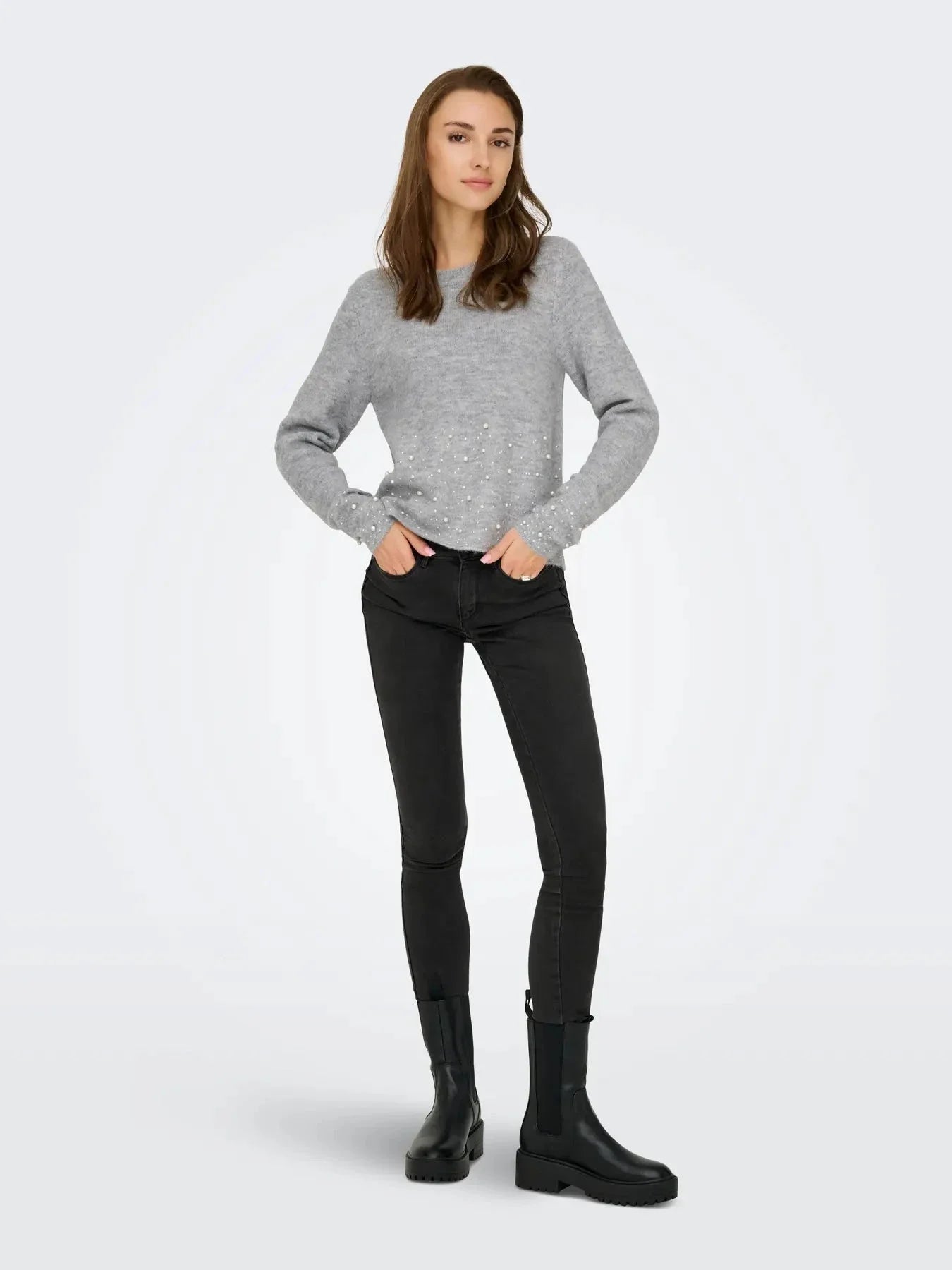 JDY Jdypearl L/S O-Neck Pearl Pullover Knt Färg: 4815065 Light Grey Melange White Pearls