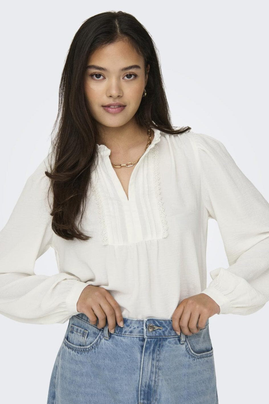 JDY Jdyrachel Life L/S Pintuck Top Färg: 4505028 Cloud Dancer