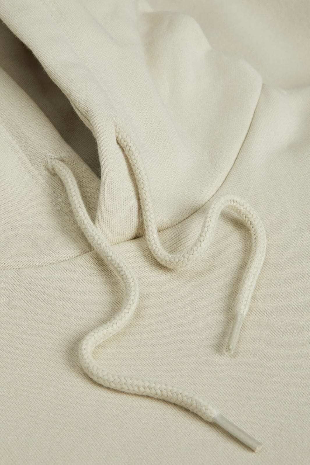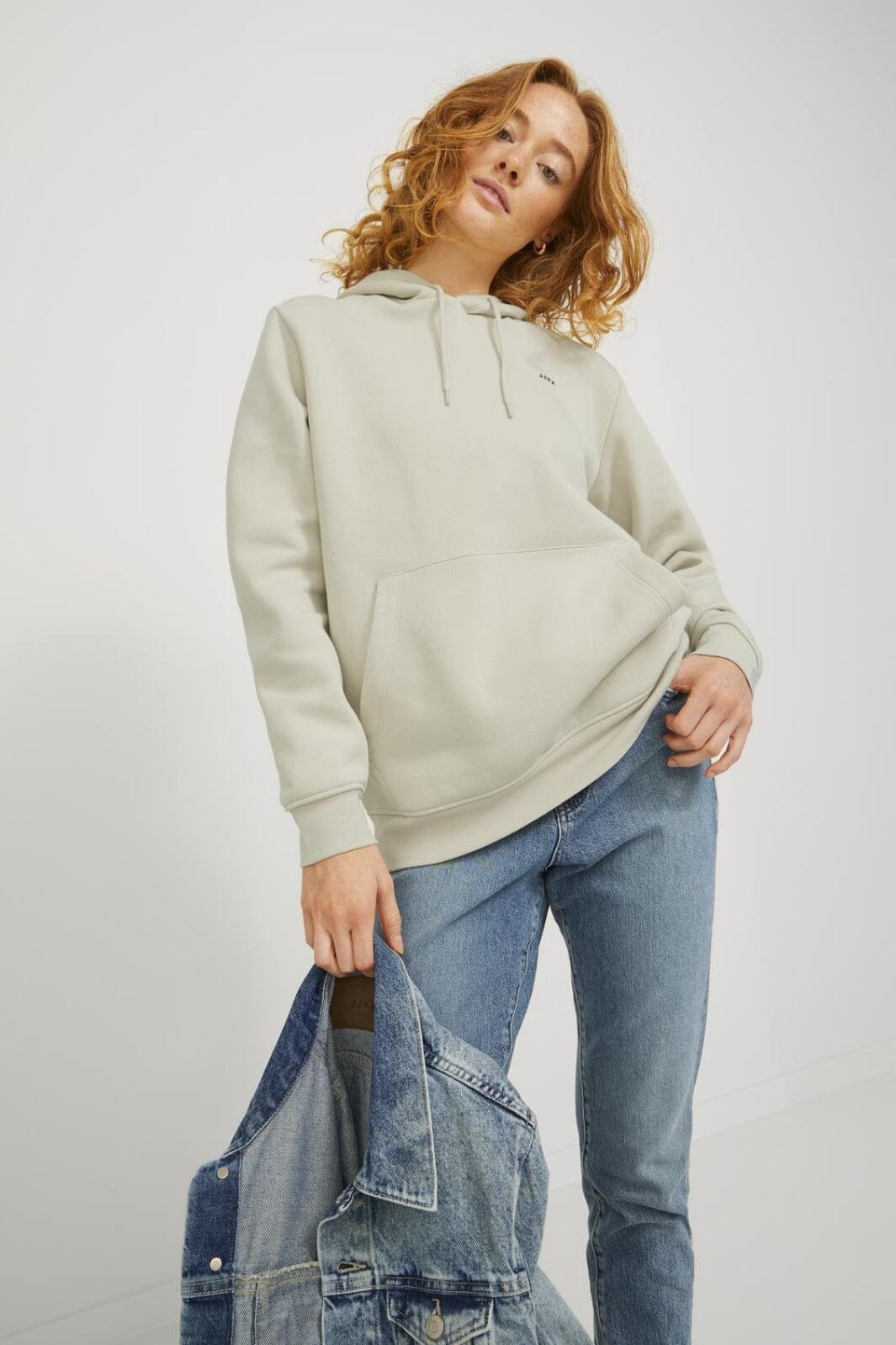 Beige hoodie från Jjxx med broderad logotyp på framsidan. Den har en lös passform och känguruficka fram.
