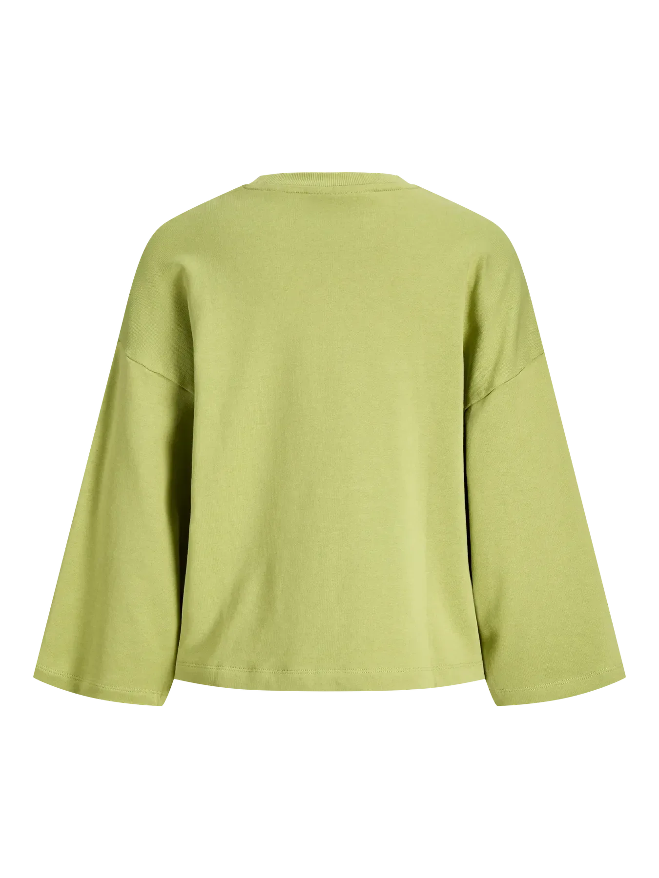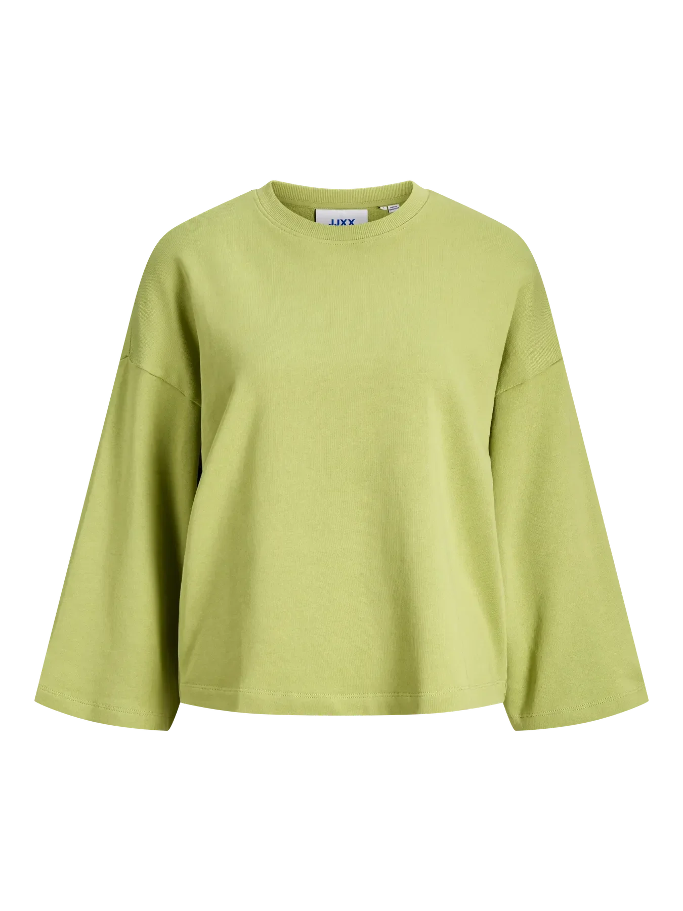 Grön sweatshirt från JJXX med en lös passform och 3/4-ärmar. Sweatshirten har en rund halsringning och är gjord av 100 % bomull.