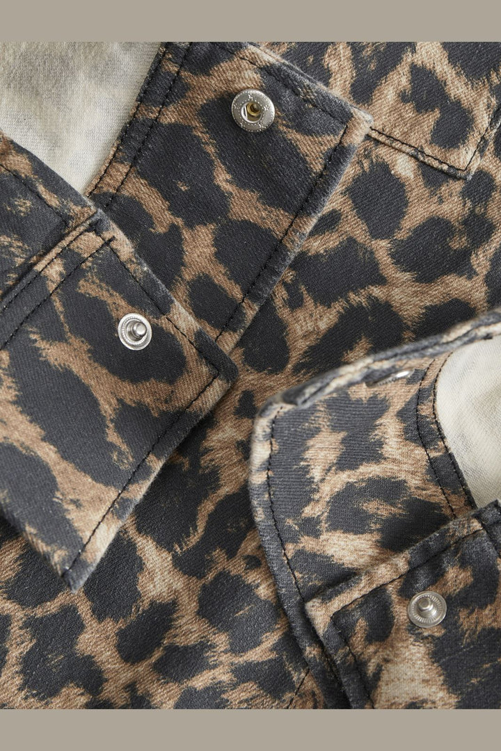 Overshirt från Jjxx i cropped längd med leopardmönster i beige och brun. Skjorten har två bröstfickor, skjortkrage och långa ärmar med en lös passform.