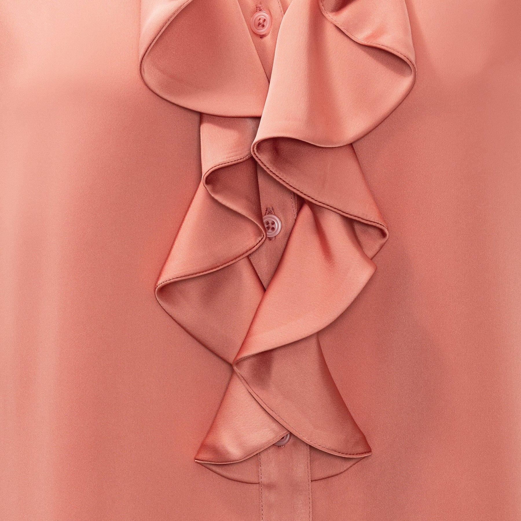 En kortärmad blus från Karmamia i en persikofärgad nyans. Blusen har V-ringning, volangdetaljer framtill och knäppning.