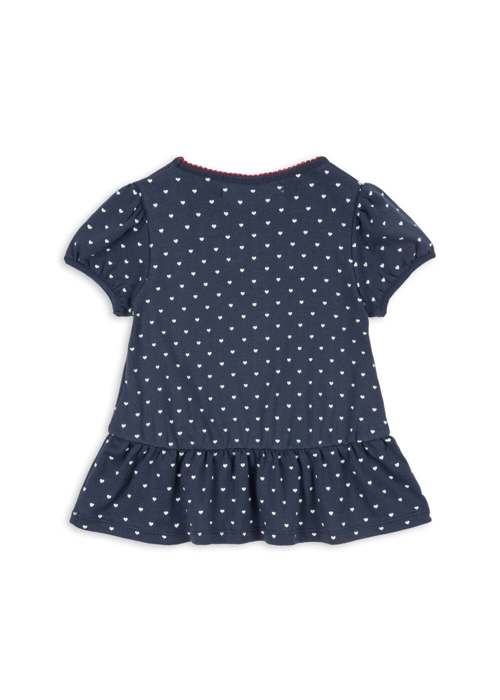 T-shirt från Konges Sløjd i mörkblått med vitt hjärtryck. Tillverkad av 100 % ekologisk bomull med dekorativa detaljer.