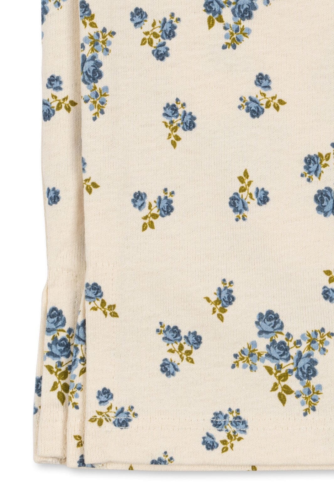 Byxor från Konges Sløjd i en krämfärgad nyans med blommönster i blå och gula toner. Byxorna är gjorda av 100 % ekologisk bomull.