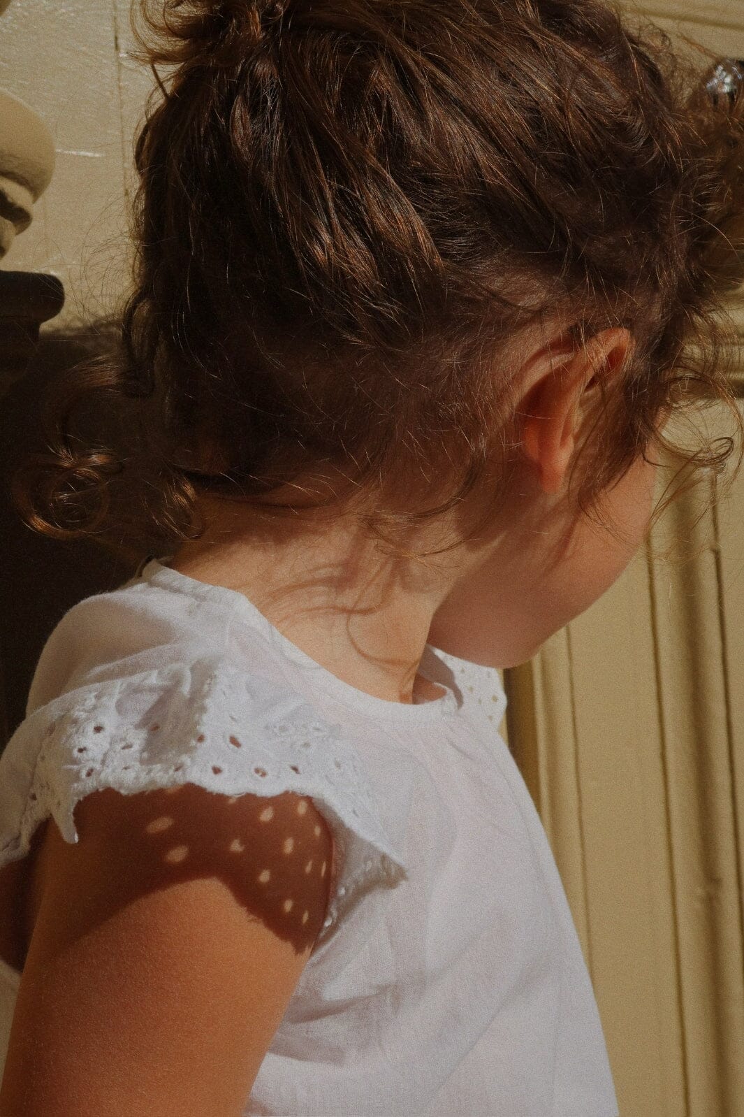 Vit topp från Konges Sløjd med broderade hål och volanger. Toppen har rund halsringning och korta ärmar med volanger i kanten.