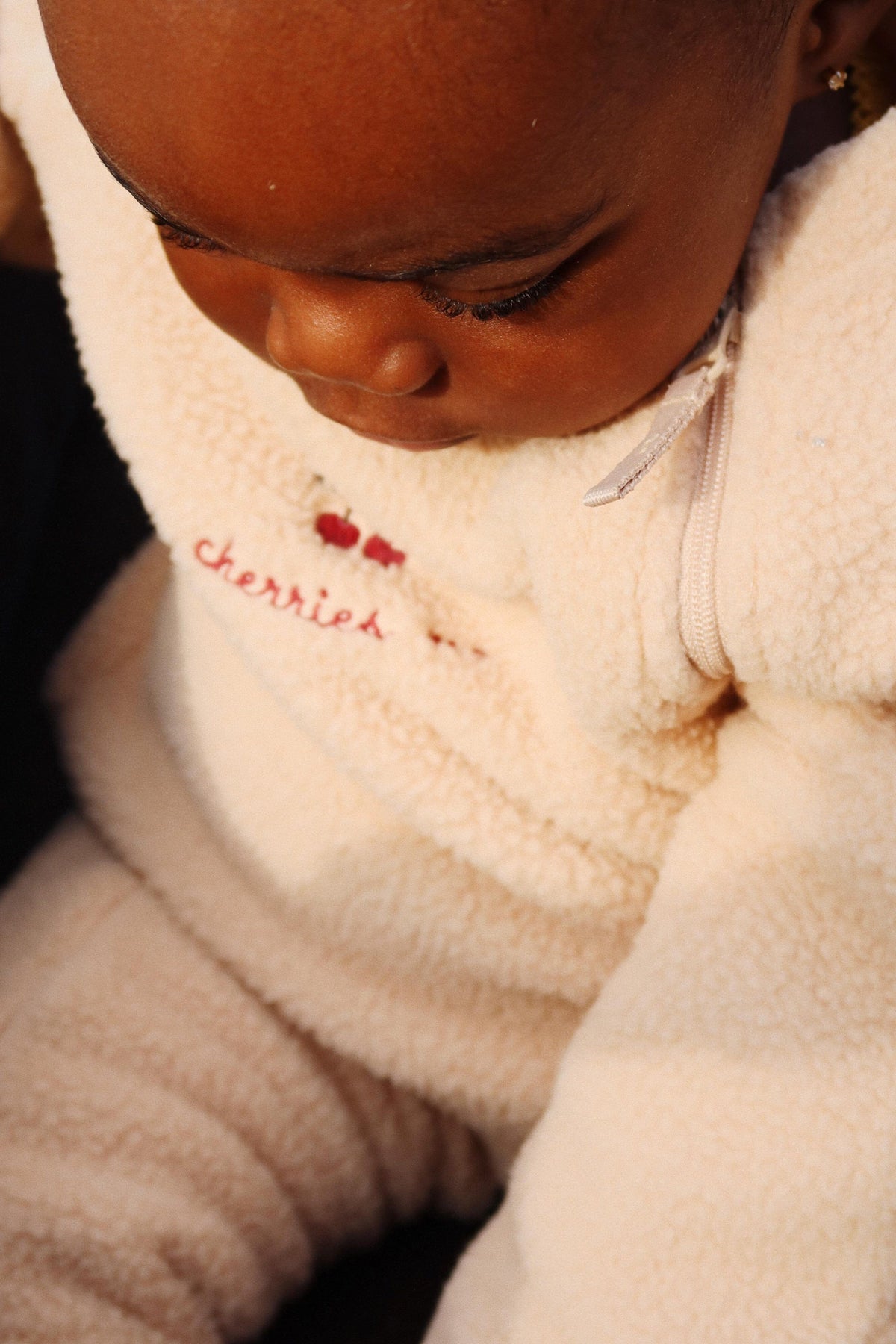 Grå heldräkt från Konges Sløjd med broderat motiv. Den har långa ärmar, ankellängd och dragkedjelåsning. Dräkten är tillverkad i återvunnen polyester med en mjuk yta.