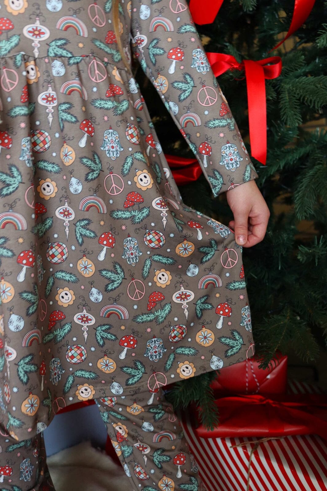 Liberte Ami Alma-Ls-Babydoll-Dress (Kids) 9658 Färg: Smiley Peace Brown