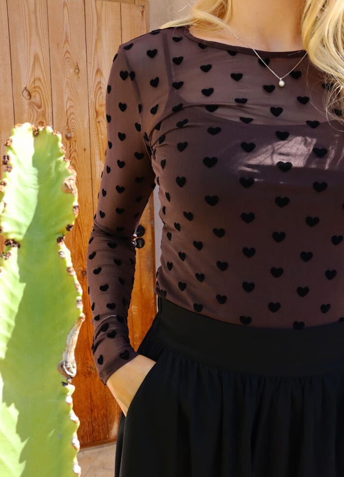 Liberte Mesh-Ls-Tshirt 22065 Färg: Dark Brown Black Flock Heart