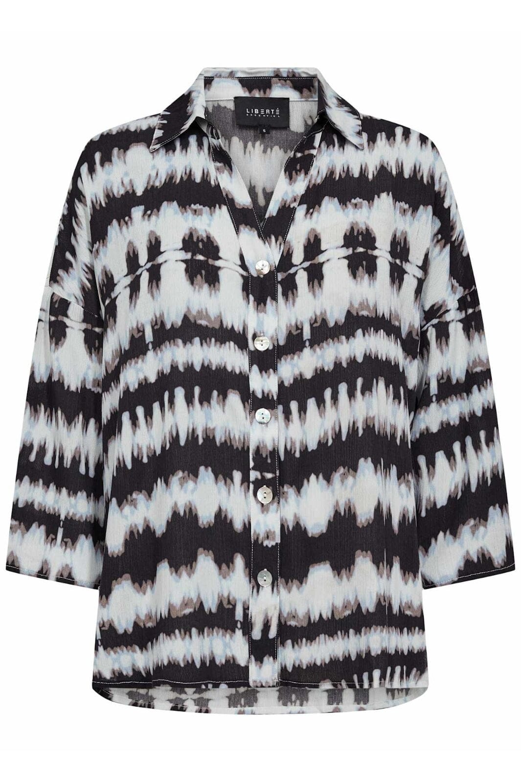 Skjorta från Liberte med svart och blått tie-dye-mönster. Den böljande färgkombinationen ger skjortan en konstnärlig prägel, medan skjortkragen och knapplåsningen håller designen klassisk.