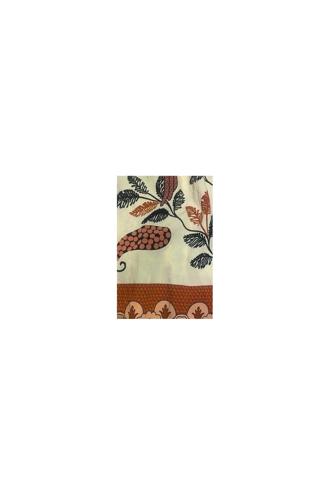 Maxikjol från Lollys Laundry i creme med ett botaniskt mönster. Klänningen kombinerar prickar och blommor i nyanser av orange och svart och har 3/4 ärmar.