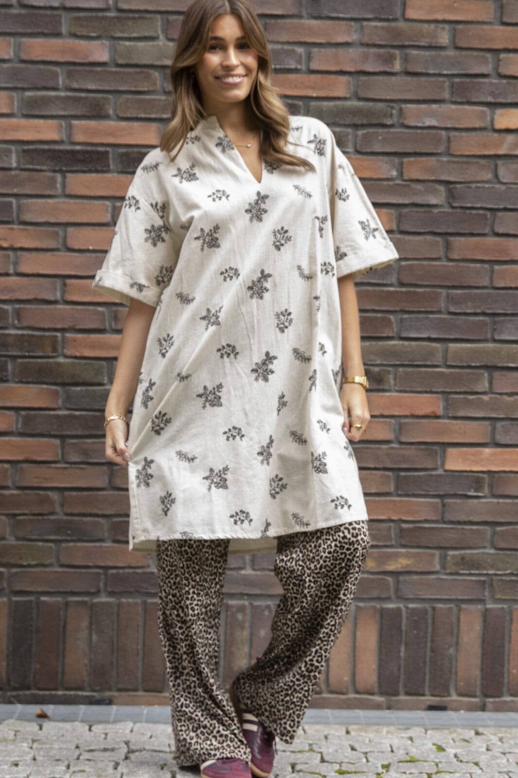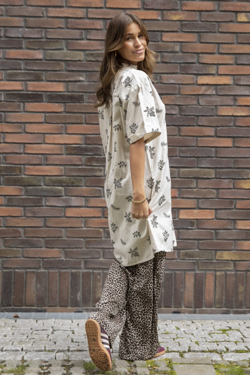 Byxor från Love & Divine i 100% polyester med leopardmönster i bruna och beige nyanser. Byxorna har en lös passform och en bred elastisk kant i midjan.