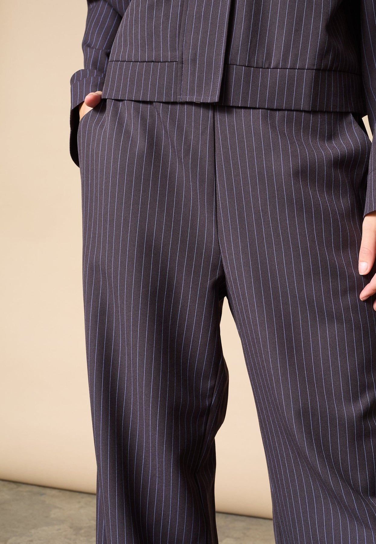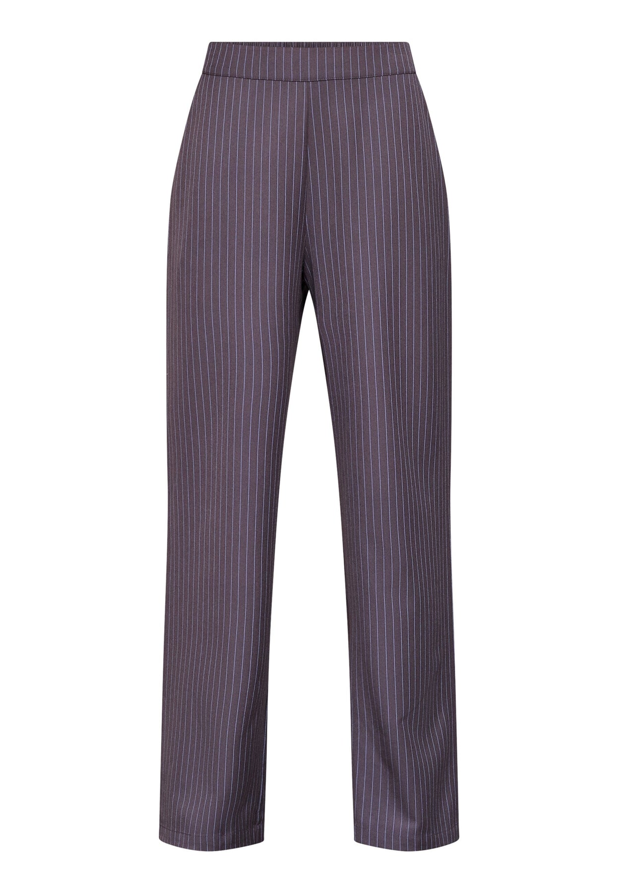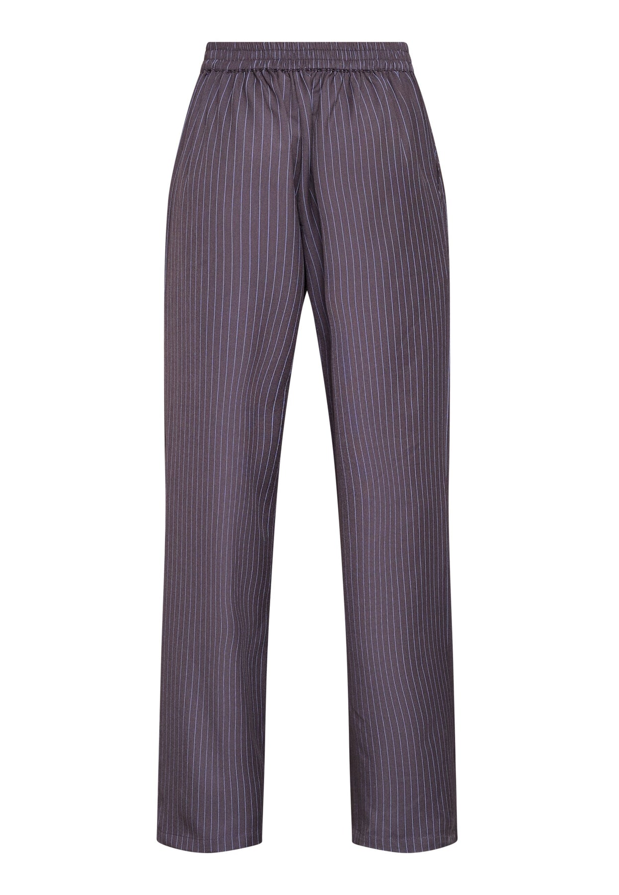 Mörkblå randiga byxor från Love & Divine med en lös passform och hellängd. Byxorna har hög midja med resår baktill och sidfickor.