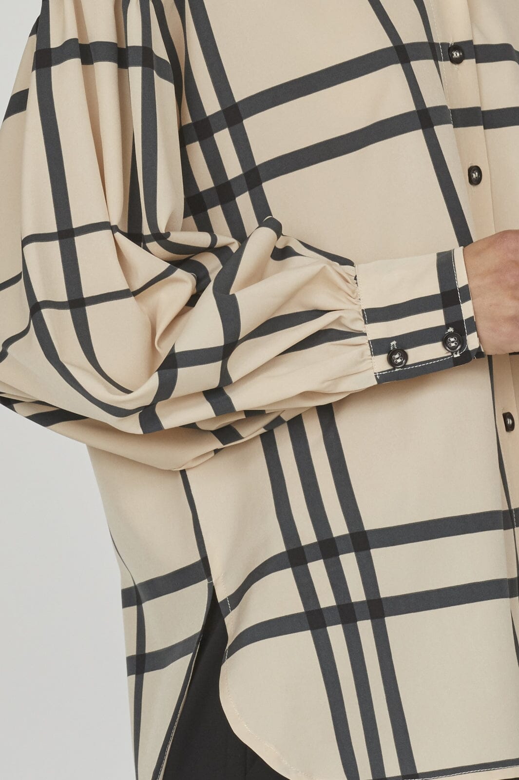 Rutigt skjorta från Love & Divine i beige och svart. Den har långa ärmar med lätt puffad effekt och en klassisk skjortkrage. Knapparna fram gör den lätt att ta av och på.
