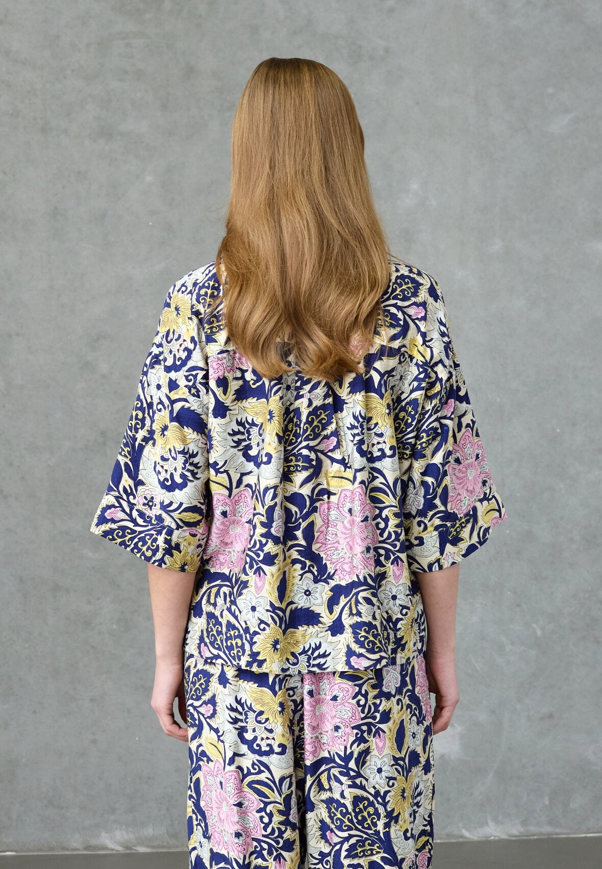 Skjorta från Love & Divine i mörkblå och blå nyanser med paisley- och blommönster. Skjortan har en oversize passform, trekvartsärmar och klassisk krage med knappstängning.