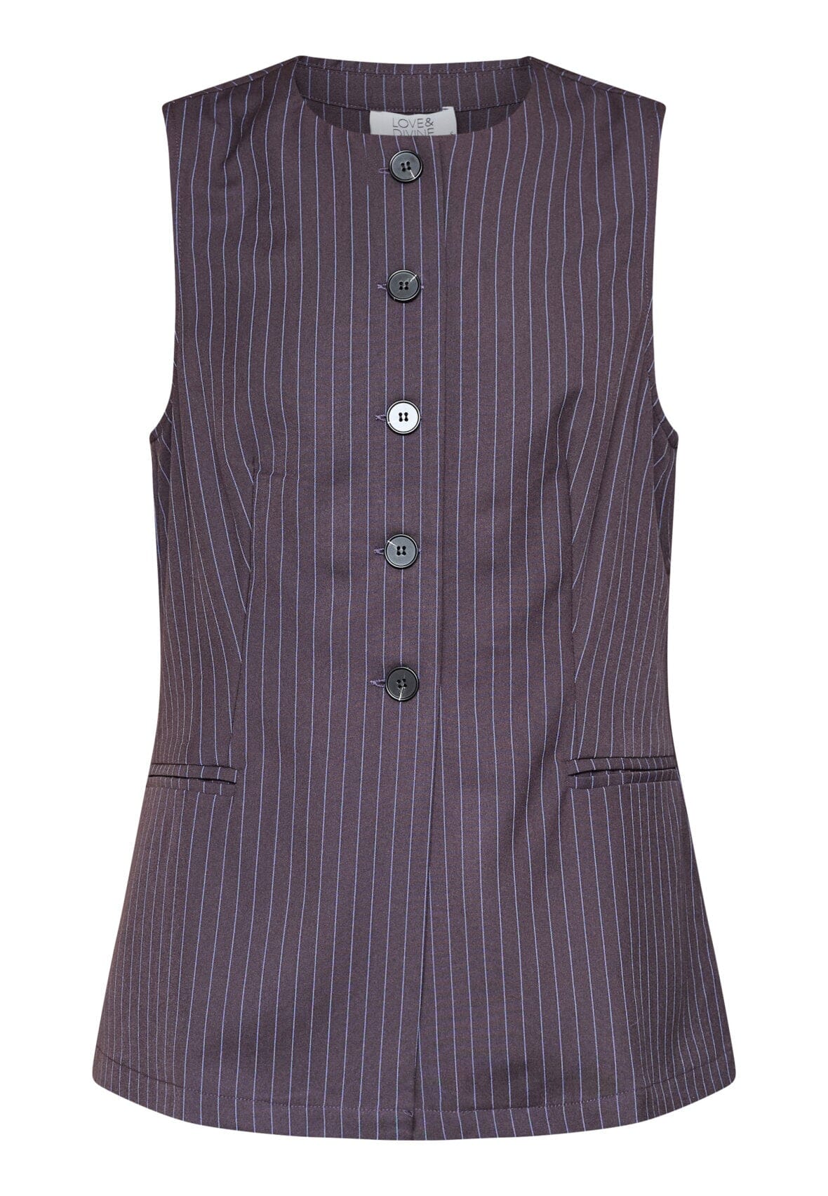 Ärmlös väst från Love & Divine med blå kritstreck. Väst som passar både för formella möten och festliga tillställningar.