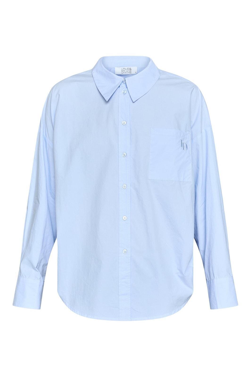 Ljusblå skjorta från Love & Divine, tillverkad av 100 % bomull. Skjortan har en klassisk krage och knäppning.