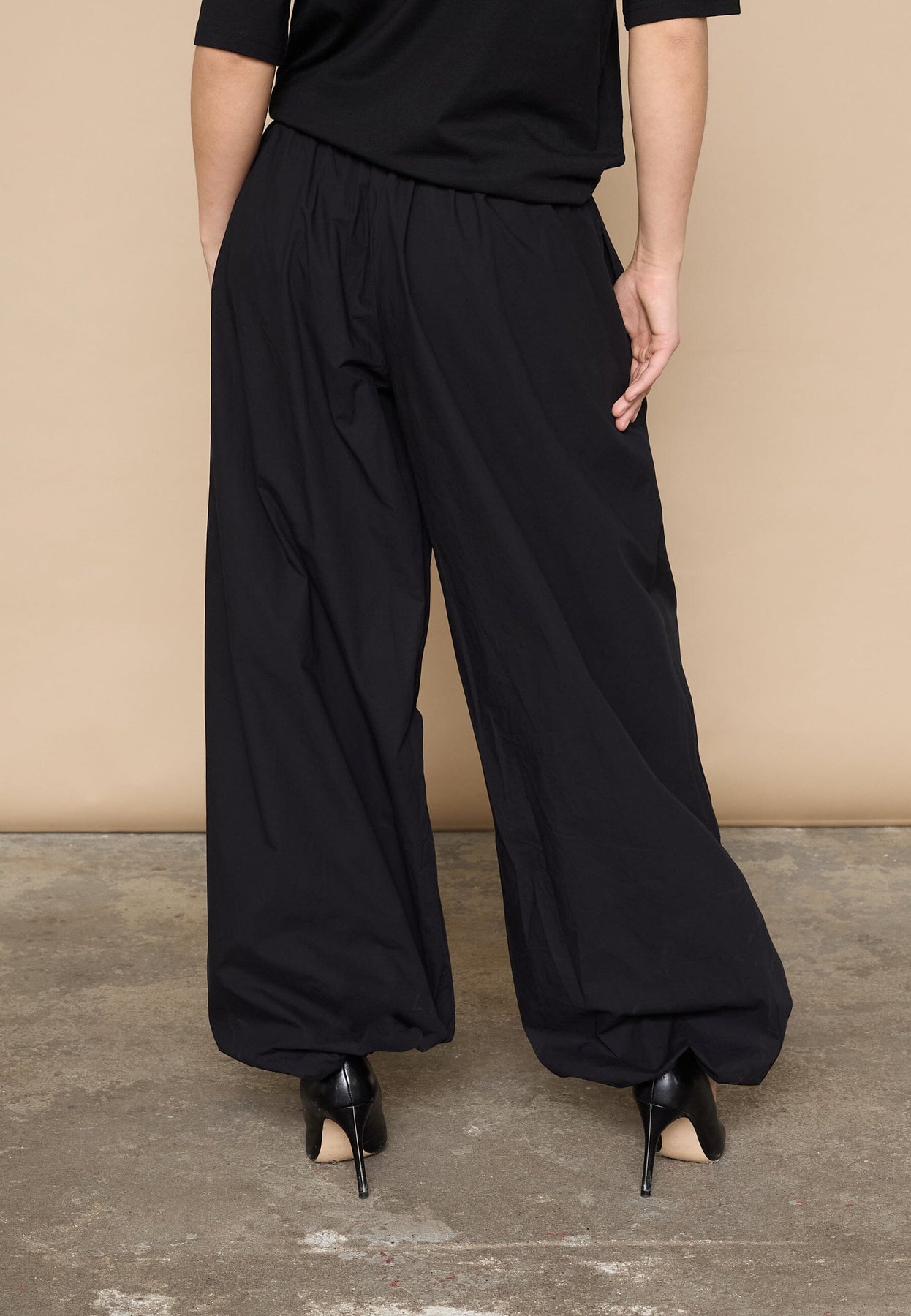Svarta byxor från Love & Divine, tillverkade av bomull. Byxorna har en lös passform med vida ben och en elastisk midja med dragsko.