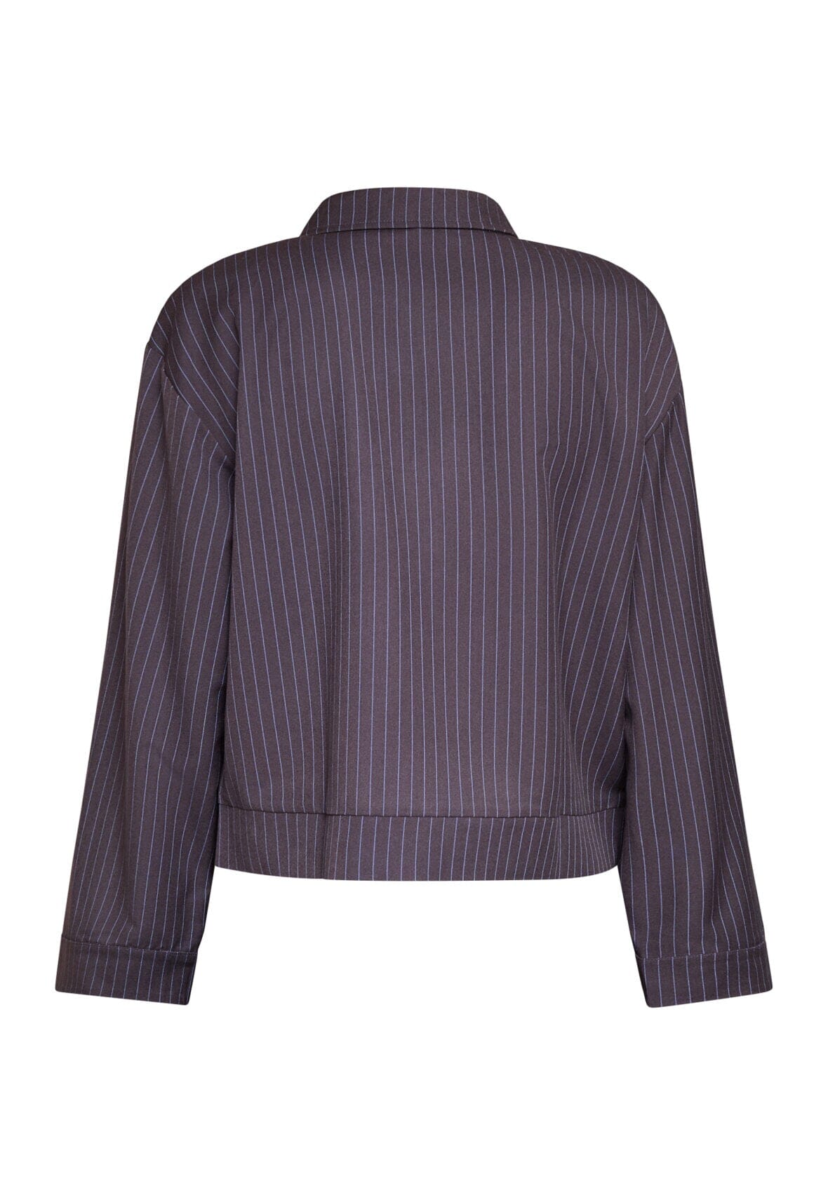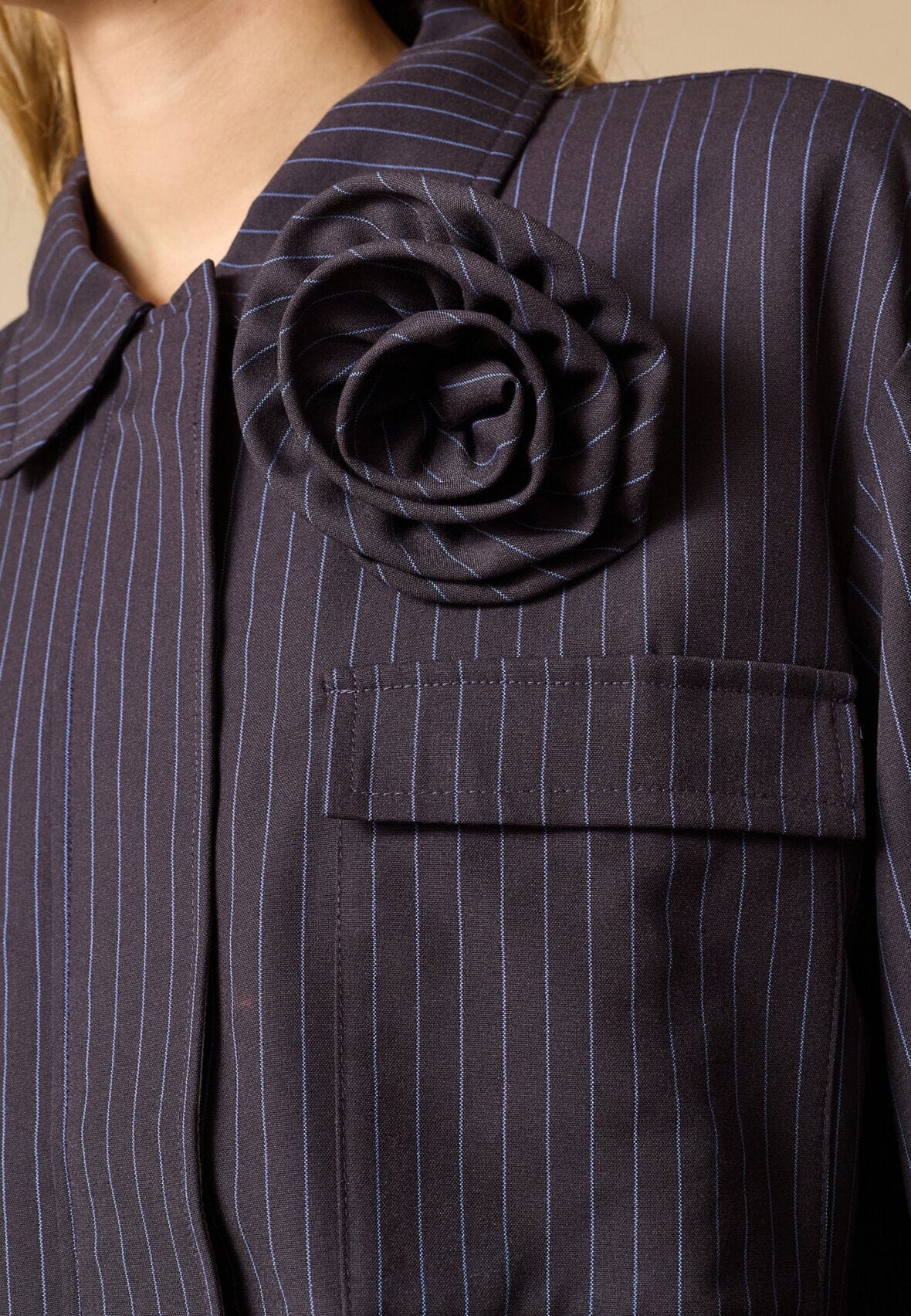 Blå pinstripe-skjorta från Love & Divine med vertikala ränder i mörkblå nyanser. Skjortan har en klassisk skjortkrage, långa ärmar och två bröstfickor framtill.