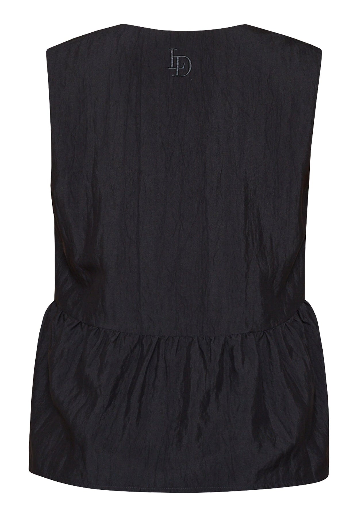 Svart ärmlös topp från Love & Divine med V-ringning och rynkor. Toppen har knappstängning och är gjord i en enfärgad svart design.