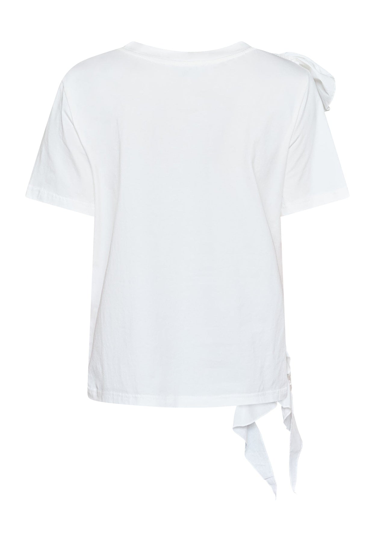 Vit T-shirt från Love & Divine med asymmetrisk design. Toppen är dekorerad med stora, voluminösa volanger över ena axeln och bröstet.