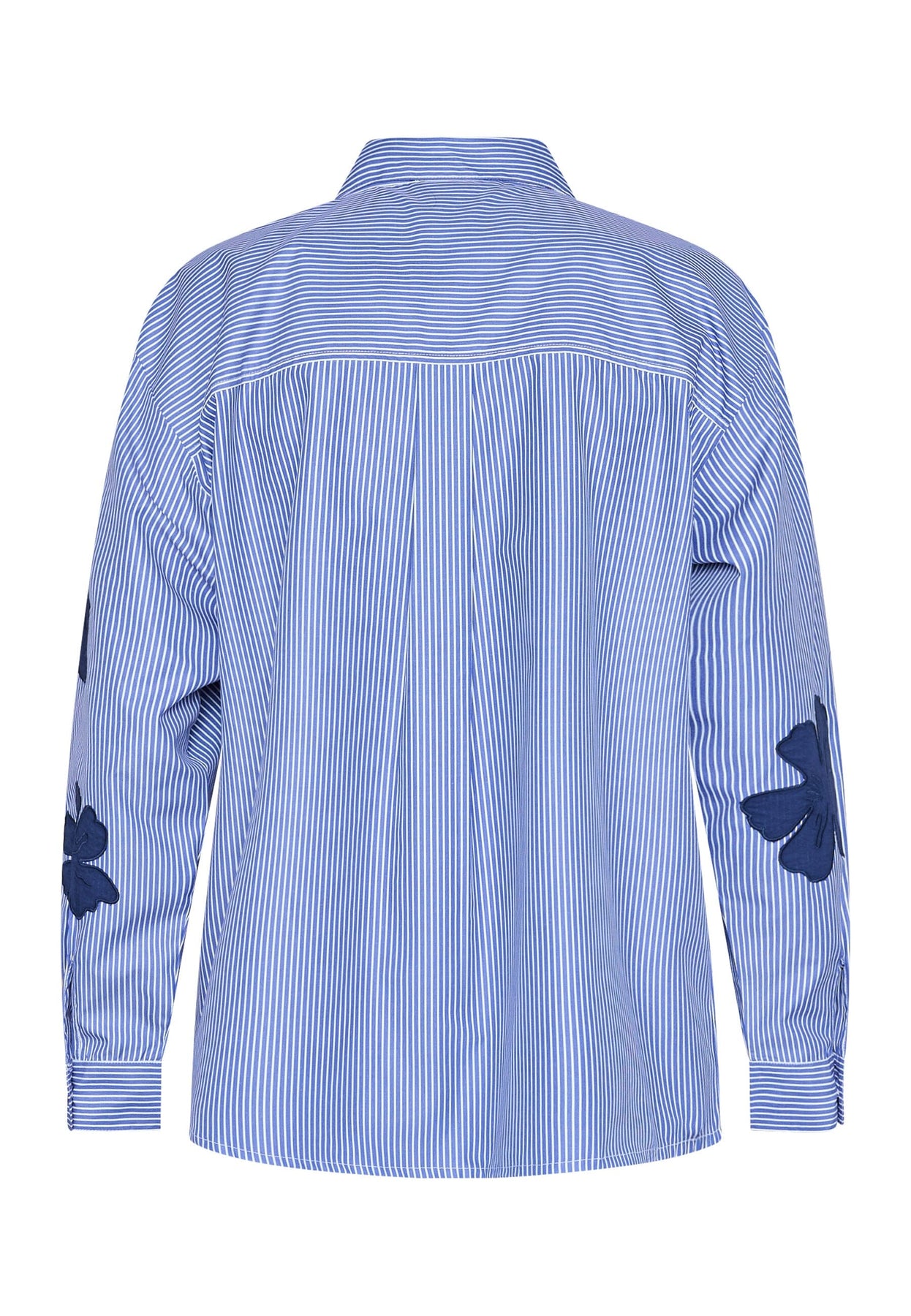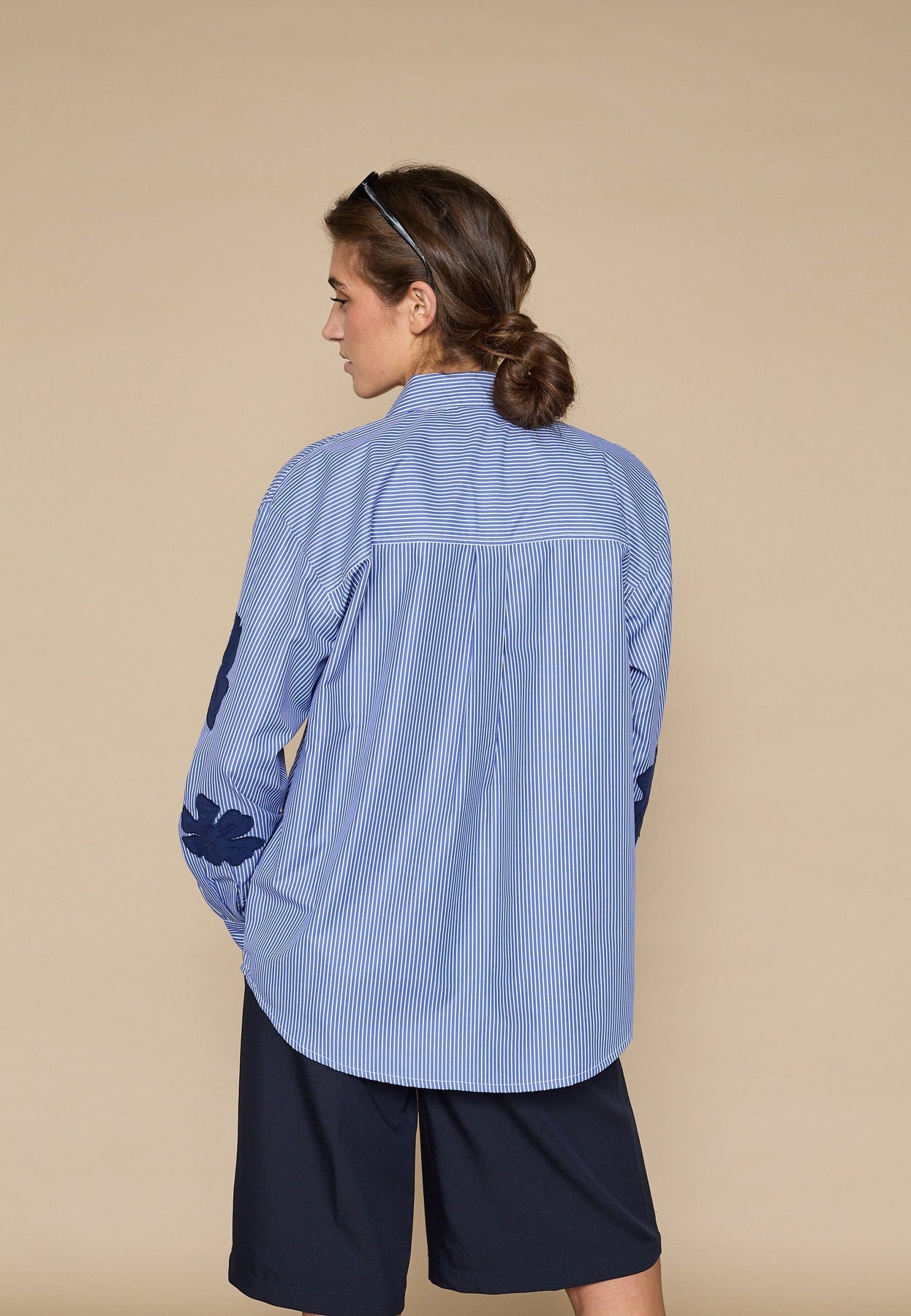 Randig skjorta från Love & Divine med stora mörkblå blomsterapplikationer. Skjortan är gjord av 100 % bomull och har en avslappnad passform.