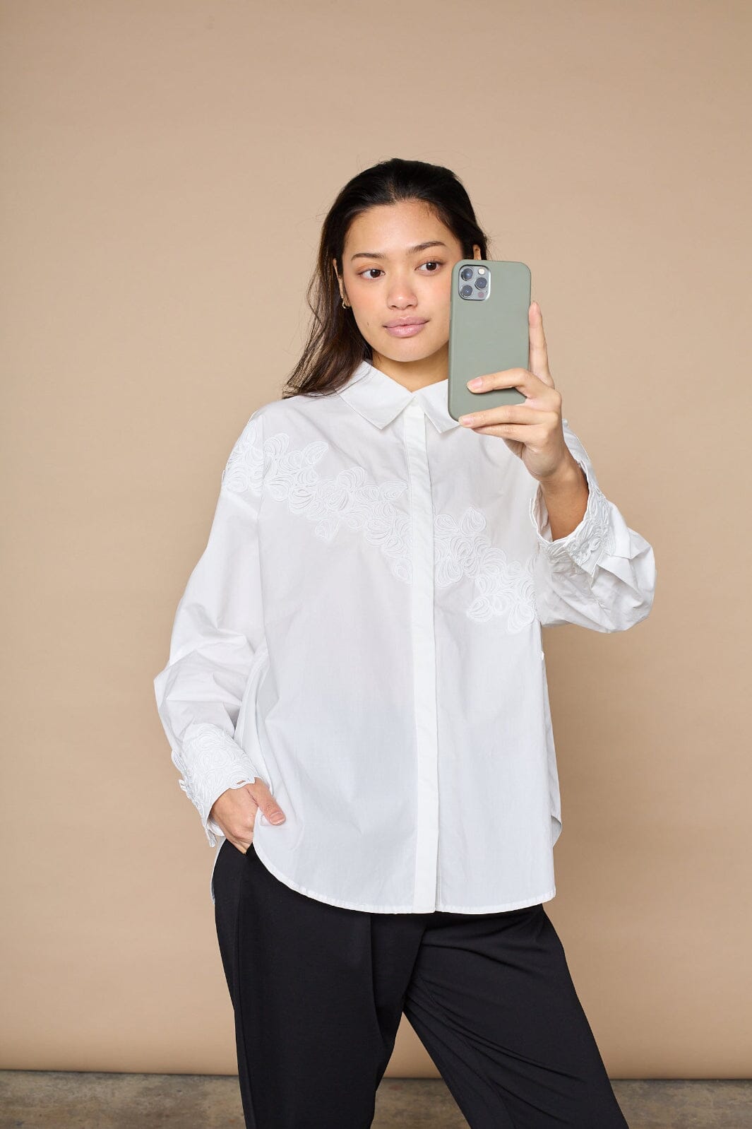Vit blus från Love & Divine, tillverkad av 100 % bomull. Den vita färgen gör blusen enkel att kombinera med andra färger.