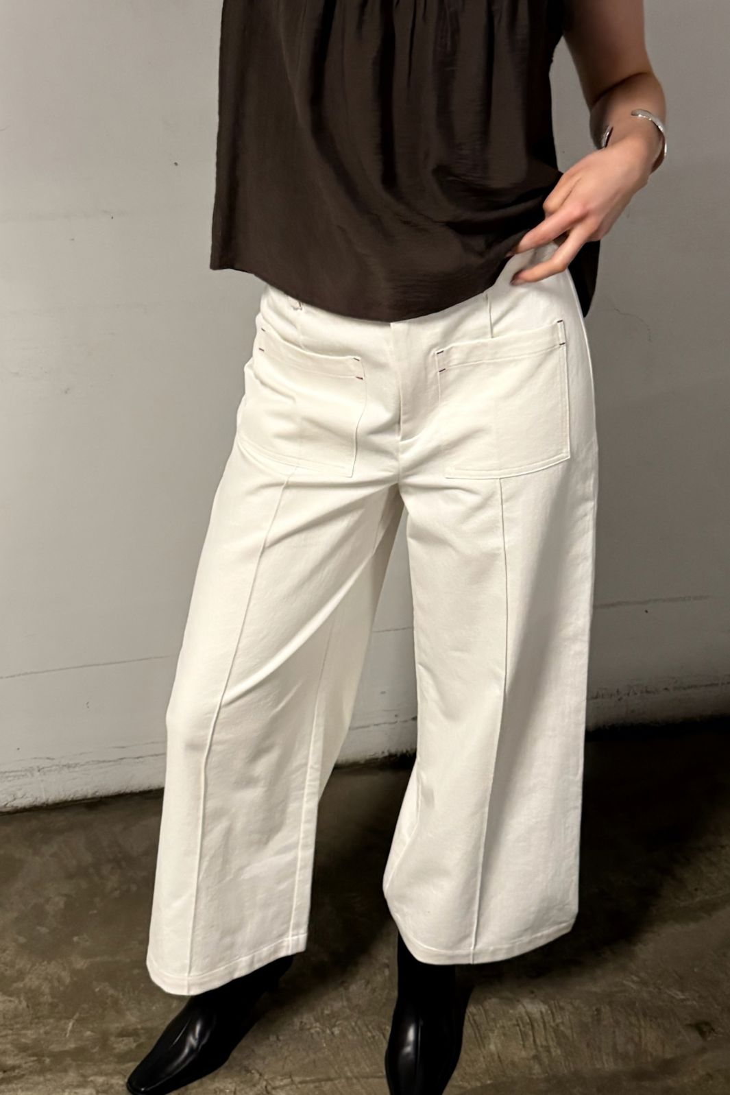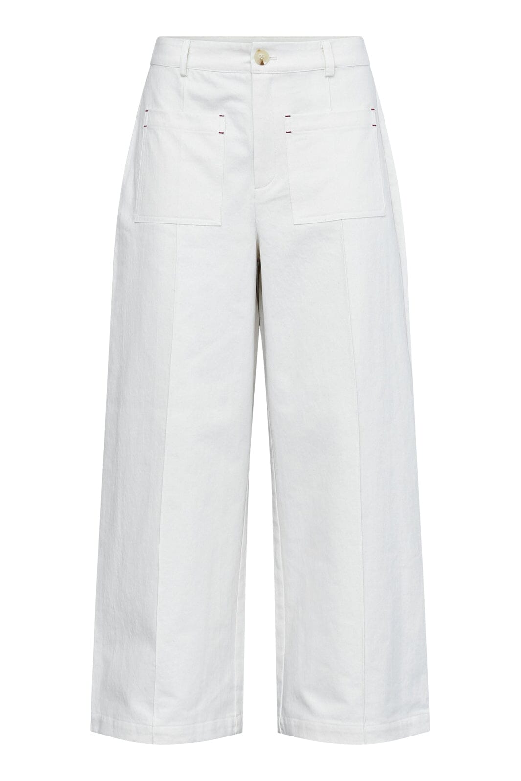 Byxor från Love & Divine i en ljus cremefärg. Byxorna är gjorda av 100 % bomull, som är andningsbar och bekväm att ha på sig.