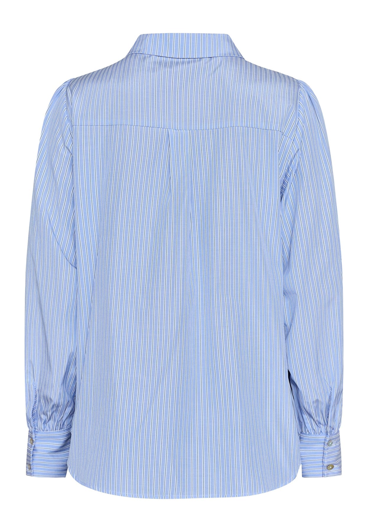 Ljusblå och vitrandig skjorta från Love & Divine med klassisk krage. Skjortan har små blomsterdetaljer på framsidan och puffärmar med breda manschetter.
