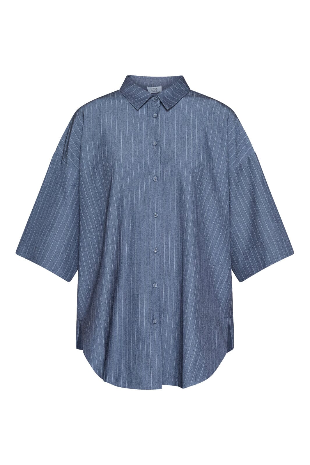 Skjorta från Love & Divine med pinstripe-mönster i blå och grå nyanser. Den har en oversize passform och klassisk skjortkrage.