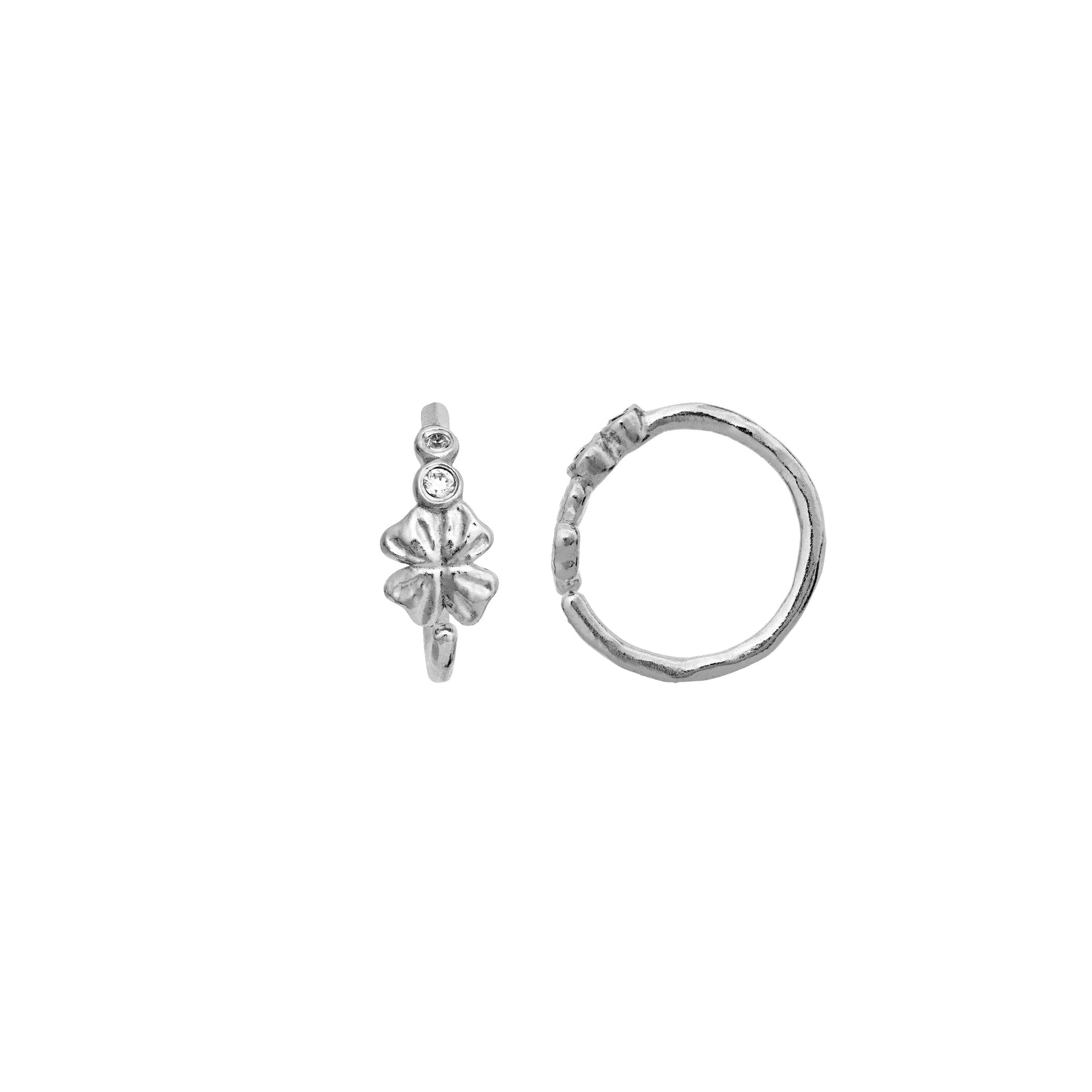 Örhängen från Maanesten, tillverkade av återvunnet sterlingsilver. Varje örhänge har en cirkulär form med blommig dekoration och små infattade stenar.