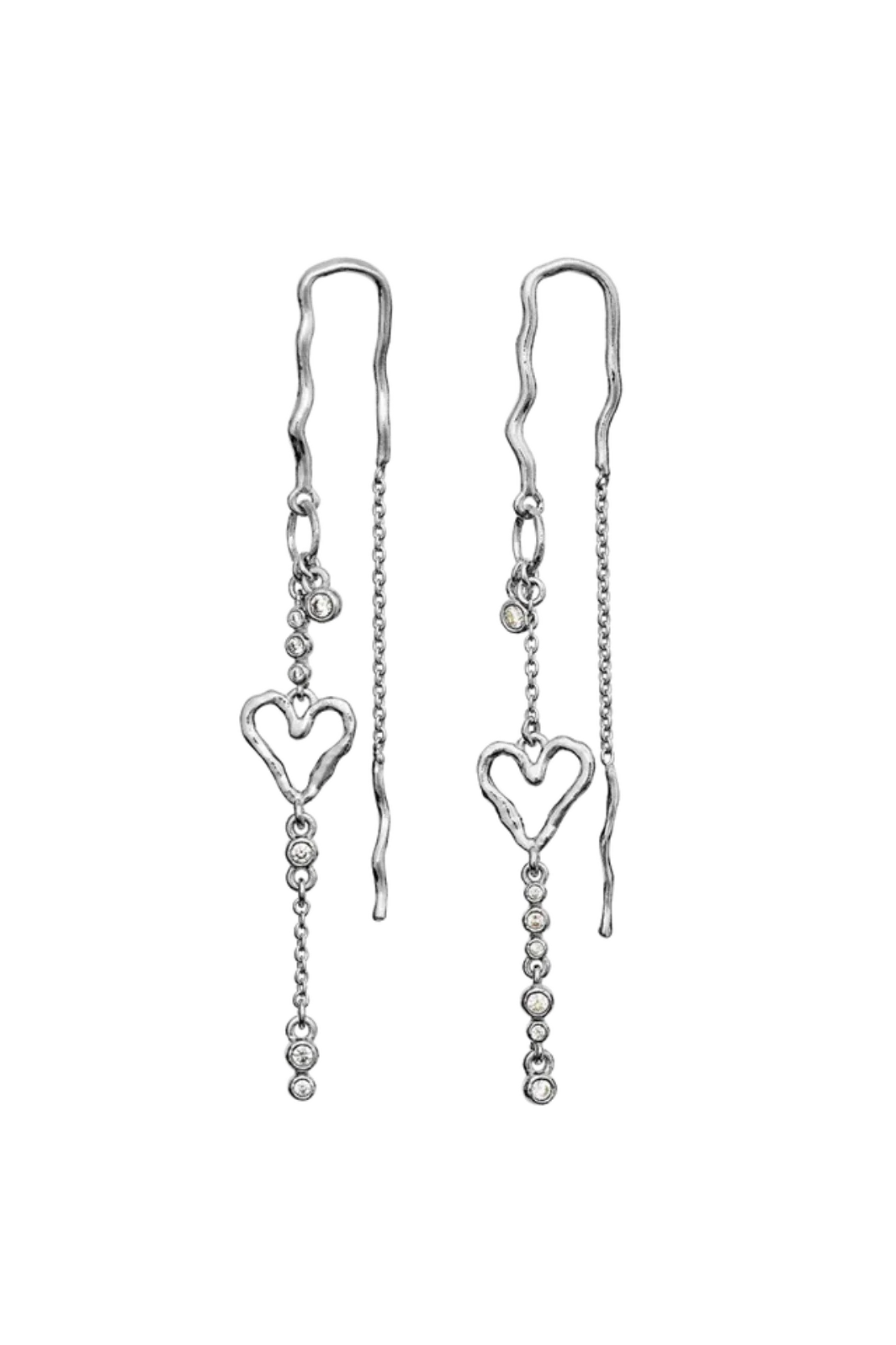 Långa örhängen från Maanesten med hjärtdesign och små runda detaljer på kedjorna. Tillverkade av återvunnet sterlingsilver och pläterade med 18 karat guld.