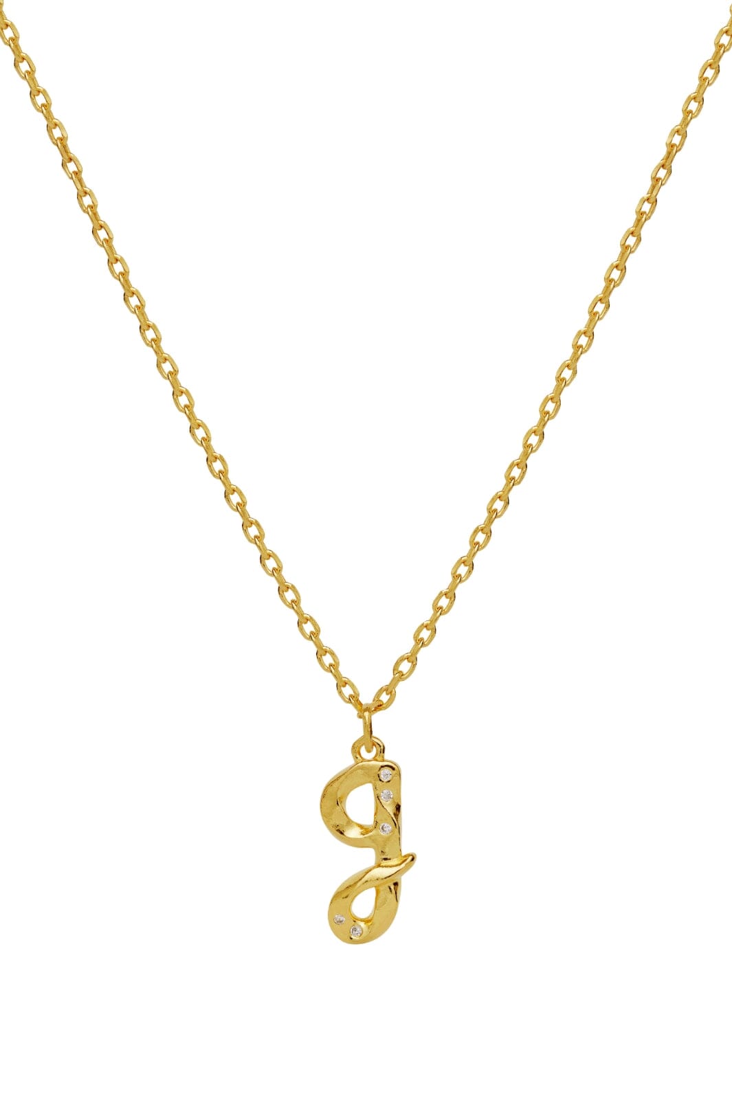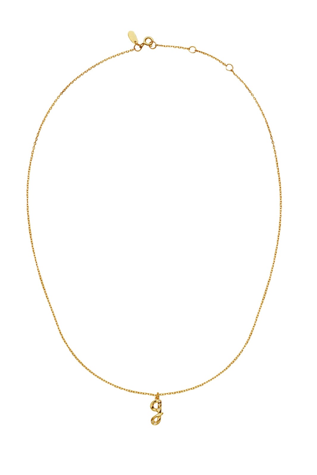 Guldpläterat halsband från Maanesten med ett G-format hänge. Halsbandet är gjort av återvunnet sterlingsilver med 18 karat guldplätering och har små dekorativa detaljer på hänget.