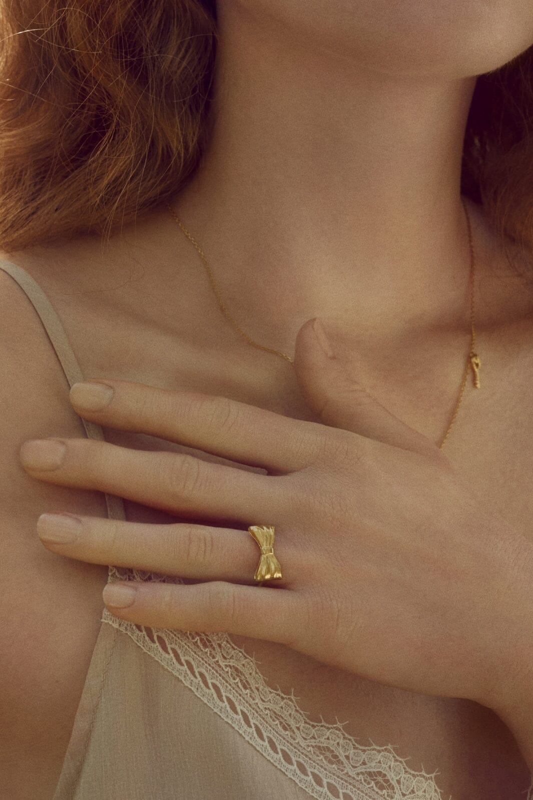 Guldpläterad ring från Maanesten med sløjfedesign. Ringen är tillverkad av återvunnet sterlingsilver med 18 karat guldplätering, vilket ger en varm gyllene yta.