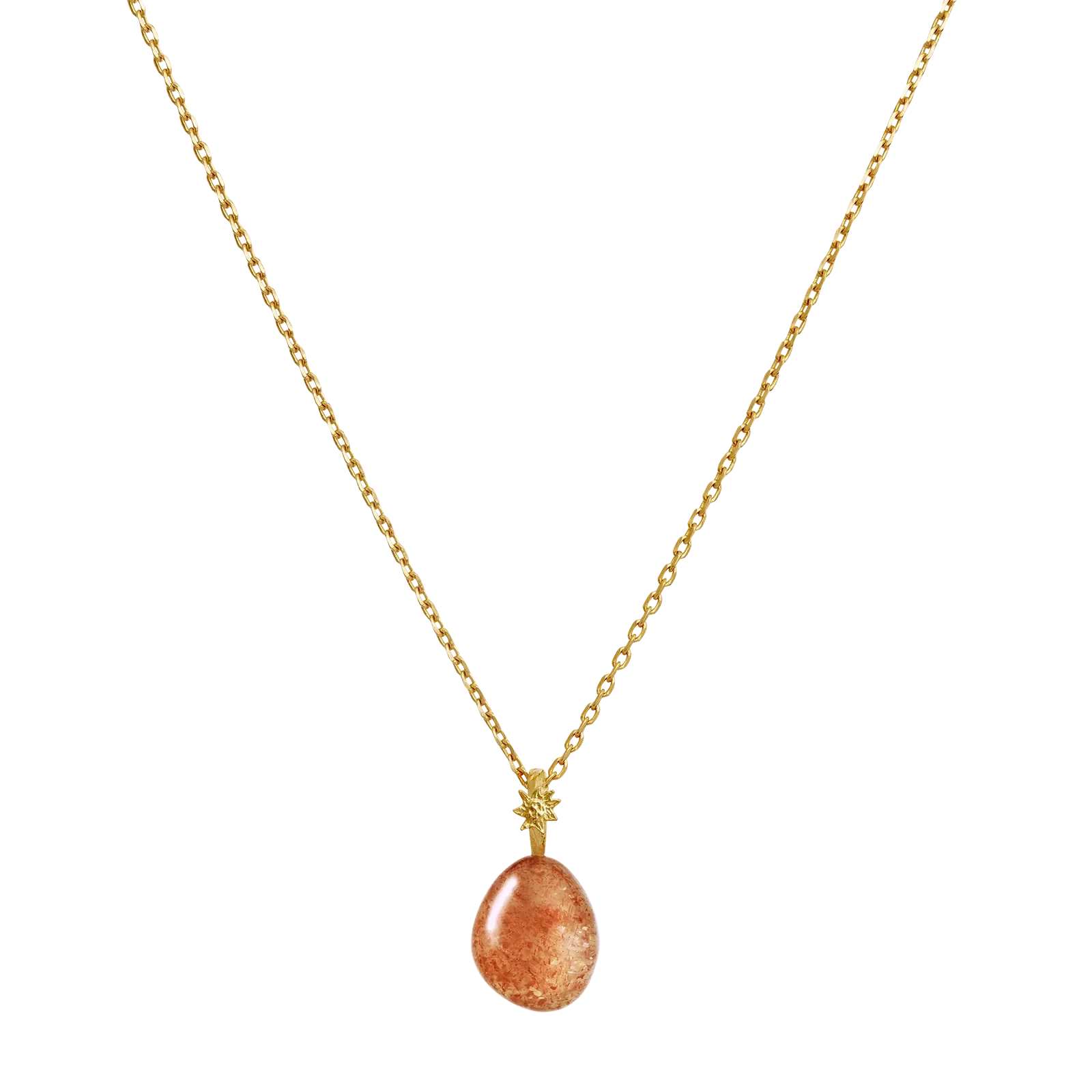 Hänge från Maanesten med en droppformad orange sten och en stjärnformad detalj upptill. Tillverkat av återvunnet sterlingsilver pläterat med guld.