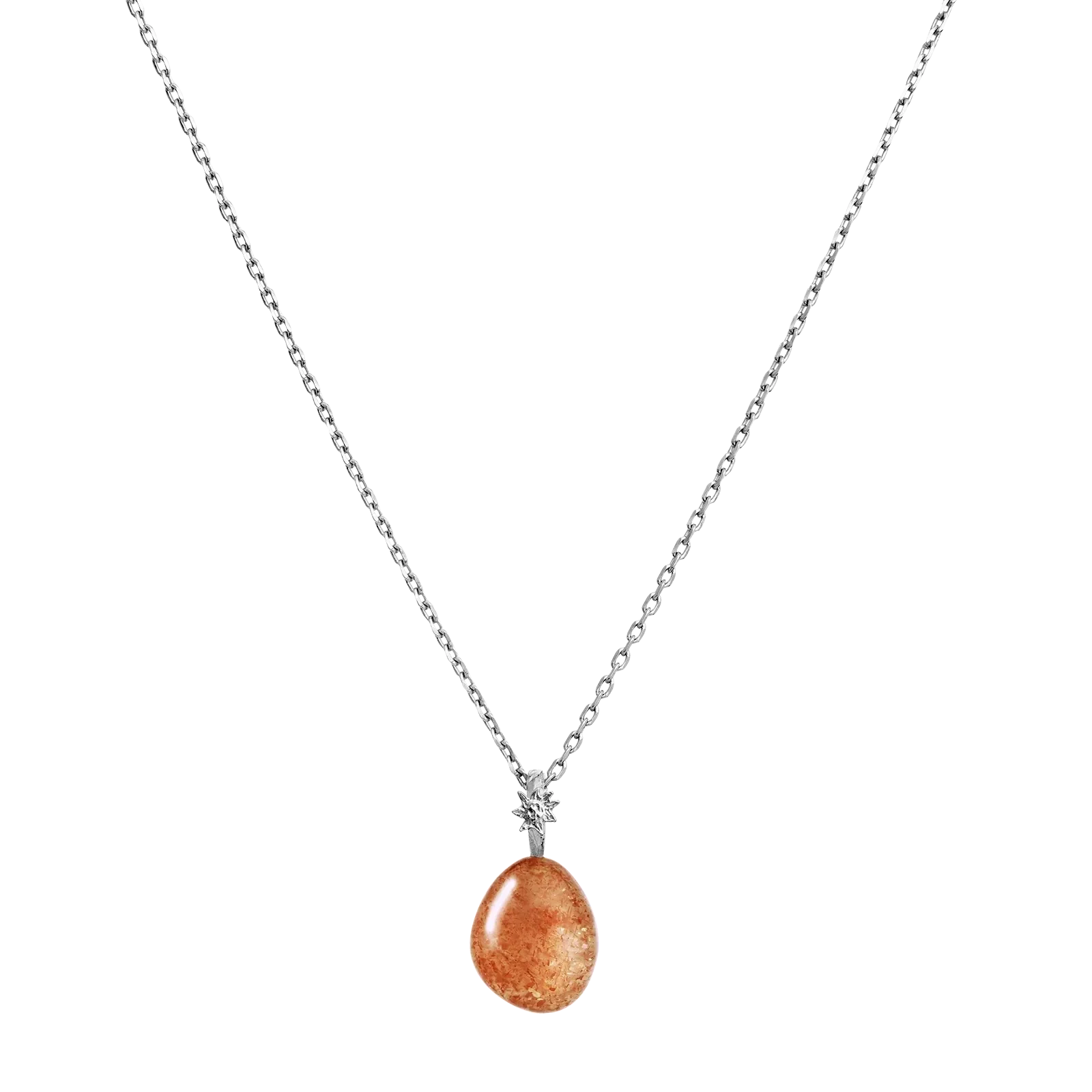 Hänge från Maanesten med en droppformad, orange sten. Hänget har en liten stjärndesign upptill som förbinder stenen med kedjan.