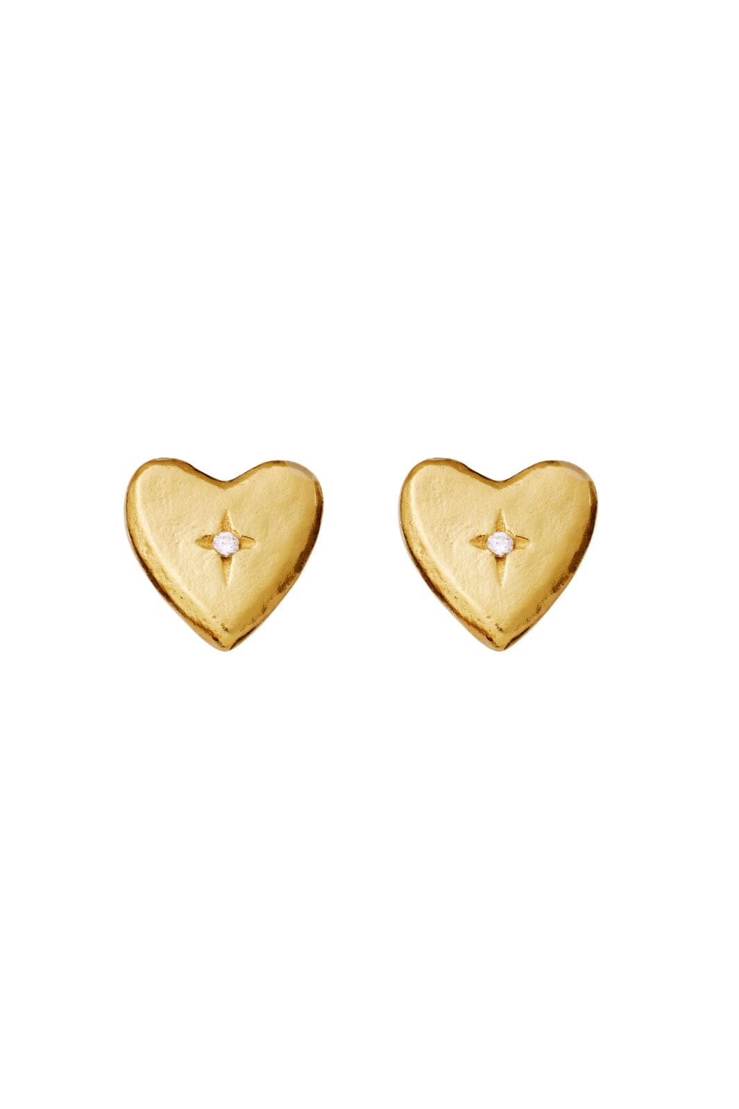 Hjärtförsedda örhängen från Maanesten med en liten kristalldetalj i mitten. De små örhängena har en kompakt storlek på 6 x 6 mm och är tillverkade med en lätt konstruktion.