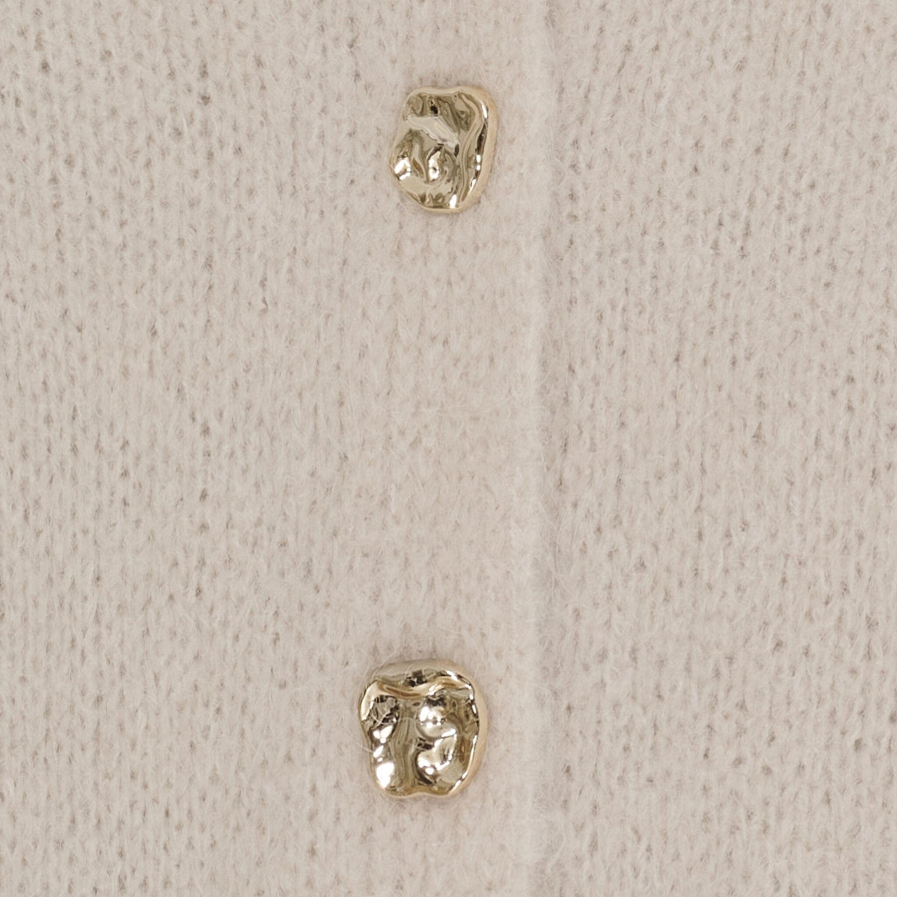 Beige väst från Marta Du Chateau med V-hals och knapplåsning. Vesten är ärmlös och har en ribbad kant vid botten.