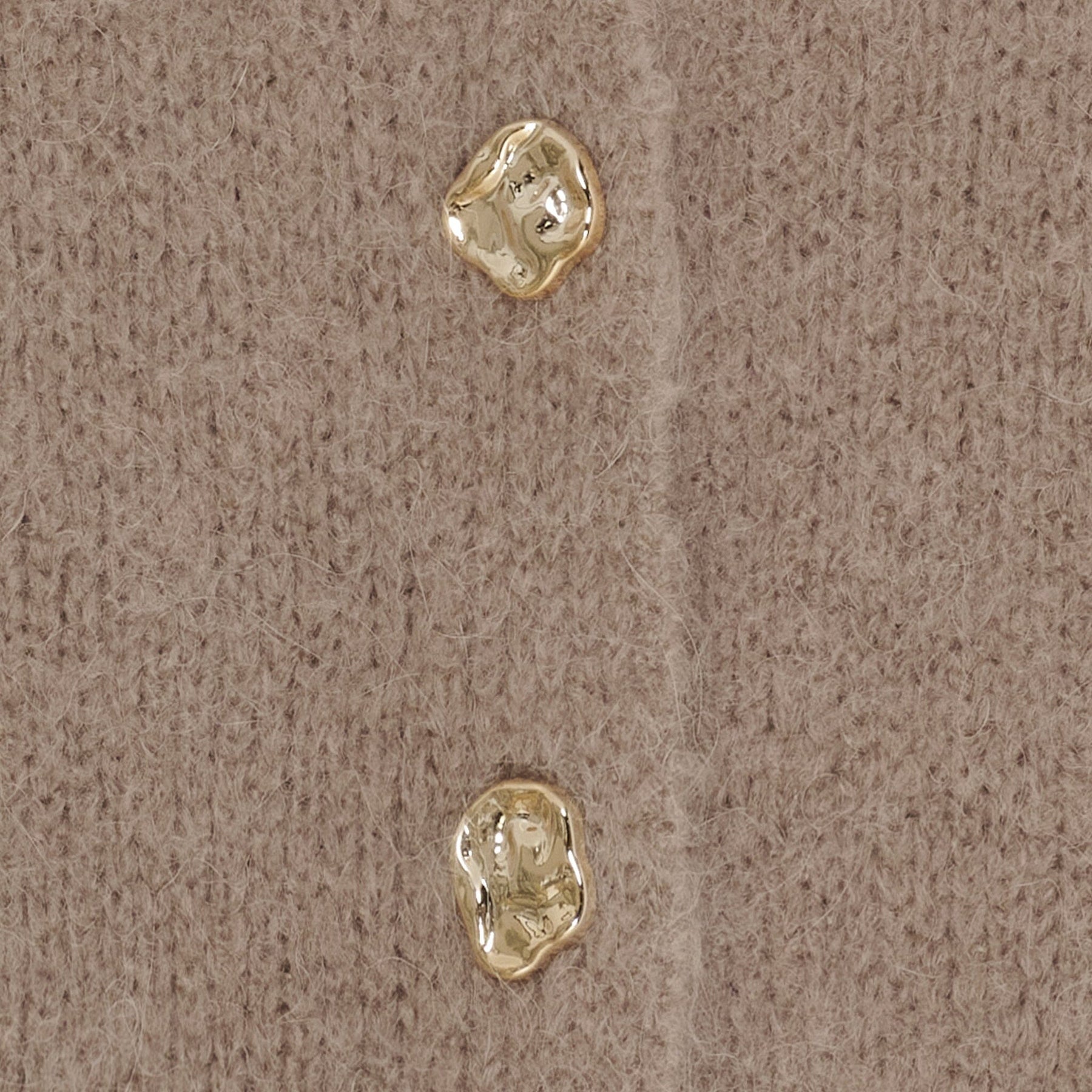 Ärmlös väst från Marta Du Chateau i en neutral brun-grå fango-färg. Vesten har en V-ringning och knappstängning fram.