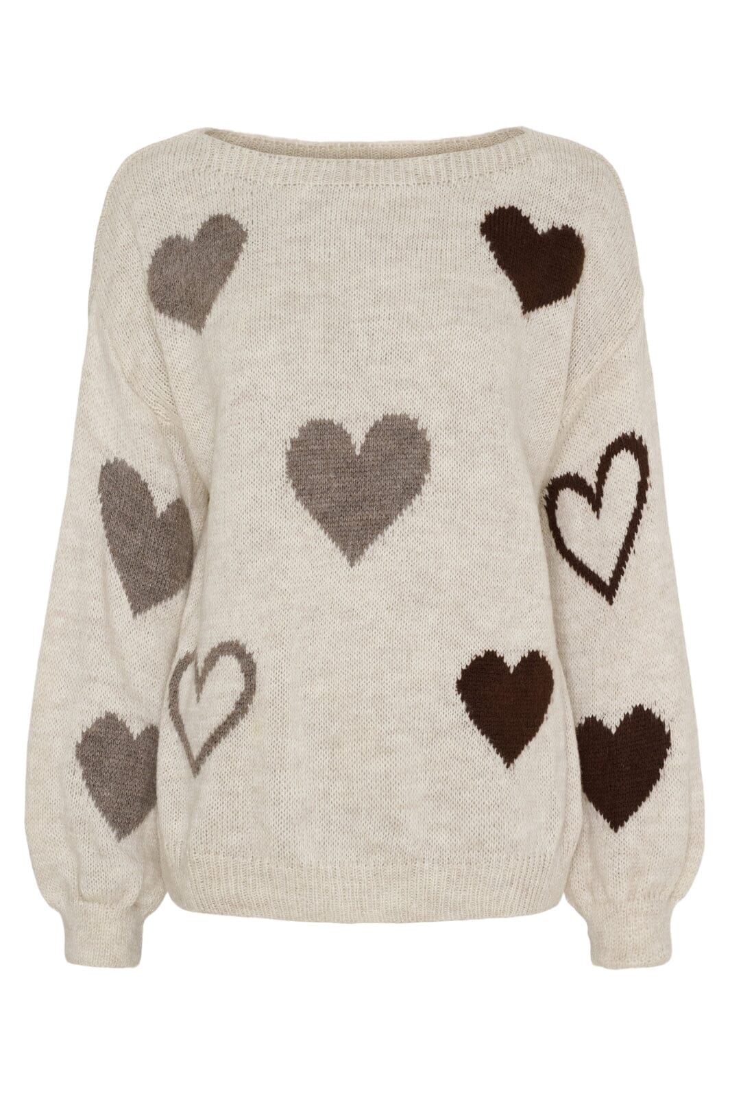 Vackraste stickade tröjan från Marta Du Château med fina hjärtmotiv. Den stickade tröjan är superklassisk och idealisk för både vardagsbruk och finare tillfällen. Till vardags, styla den med jeans och sneakers. För finare tillfällen, styla den med en kjol och stövlar.
