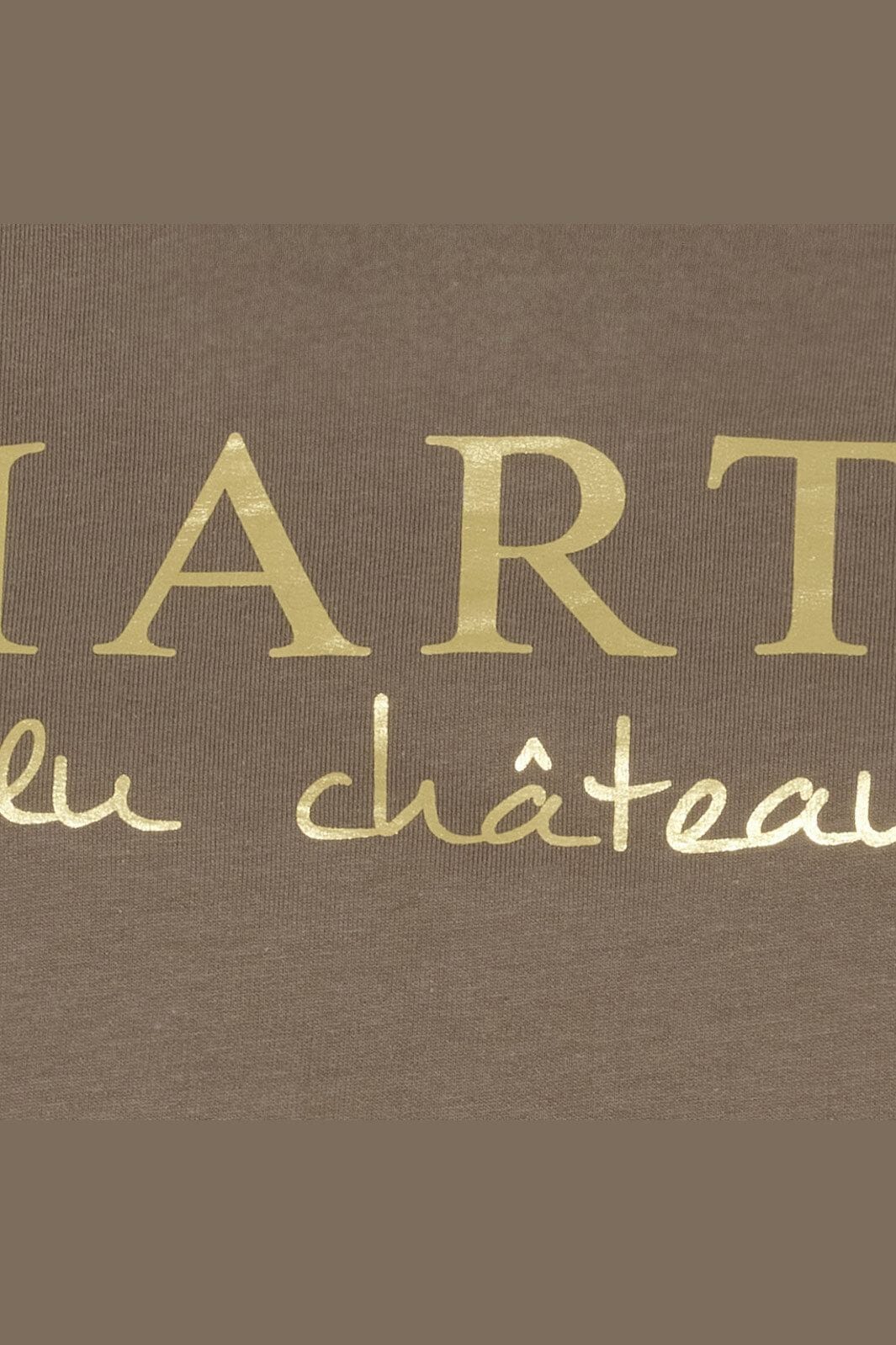 Tröja från Marta Du Chateau i en jordfärgad fango-nyans. Den har en guldfärgad logotyptryck på framsidan och en avslappnad passform som gör den lätt att styla till olika outfits.