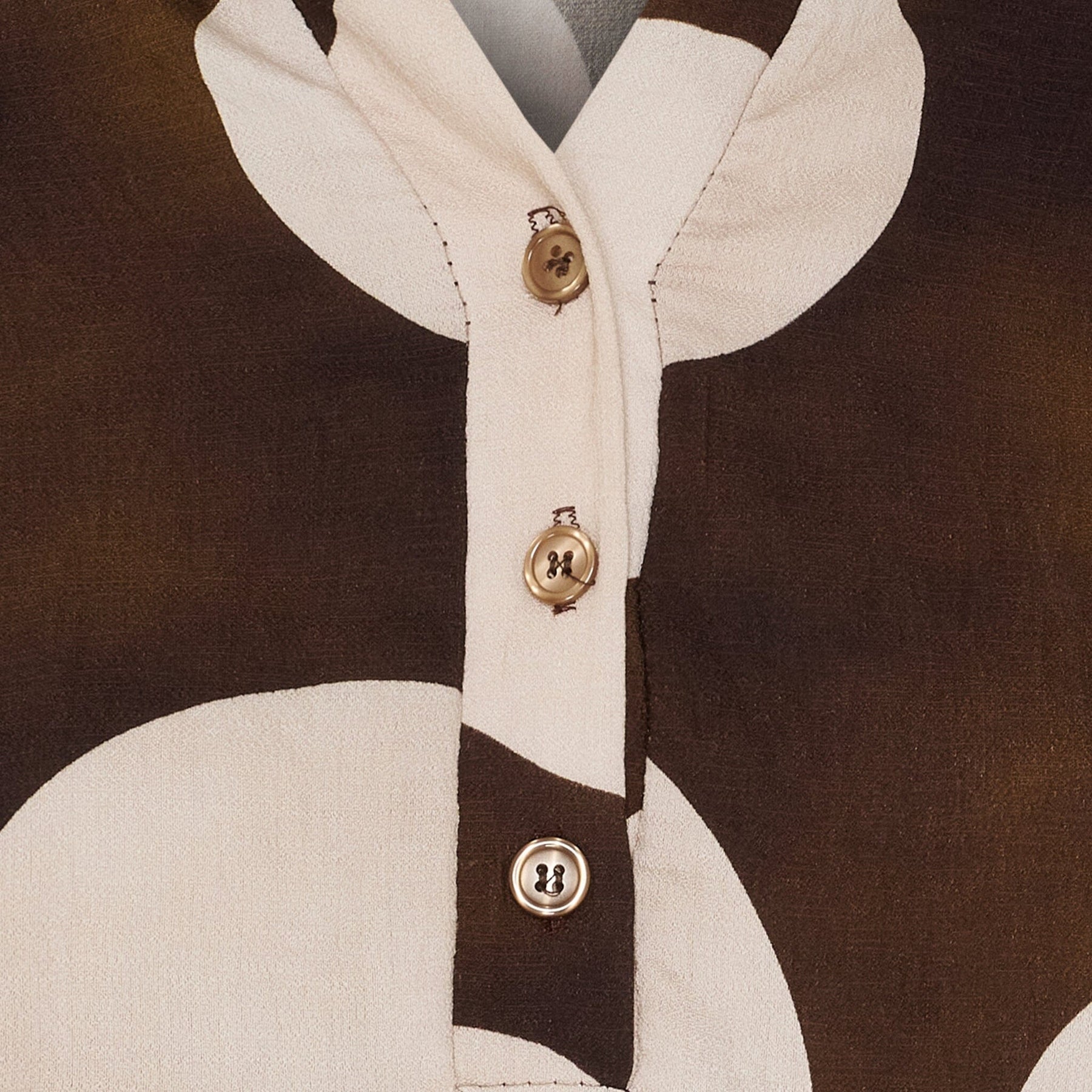 Brun skjorta från Marta Du Chateau med stora ljusa prickar på mörk bakgrund. Skjortan har en klassisk skjortkrage och lös passform med långa ärmar och knäppning framtill.