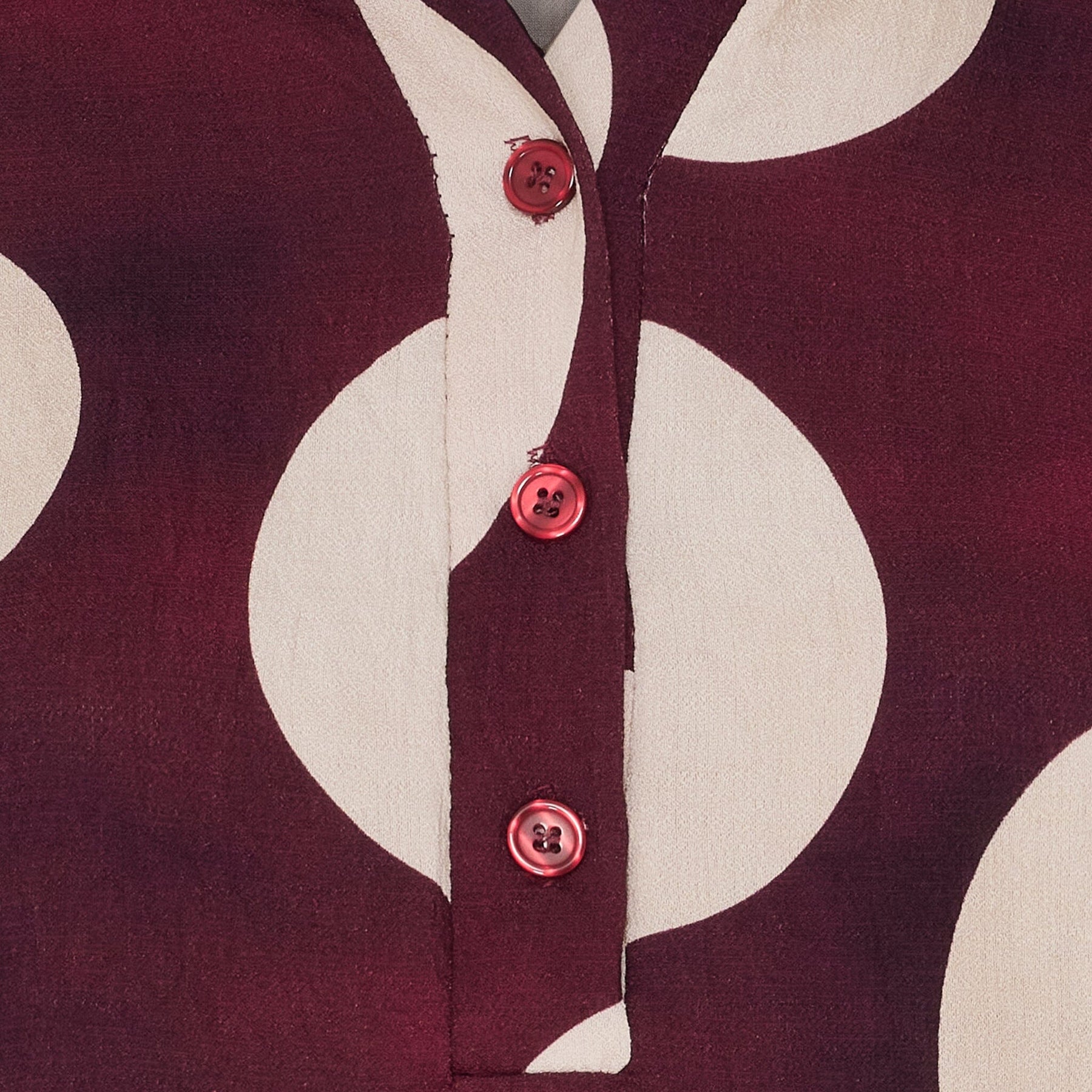 Skjorta från Marta Du Chateau i mörkröd med stora vita prickar. Den lösa modellen har långa ärmar och skjortkrage med knäppning framtill.