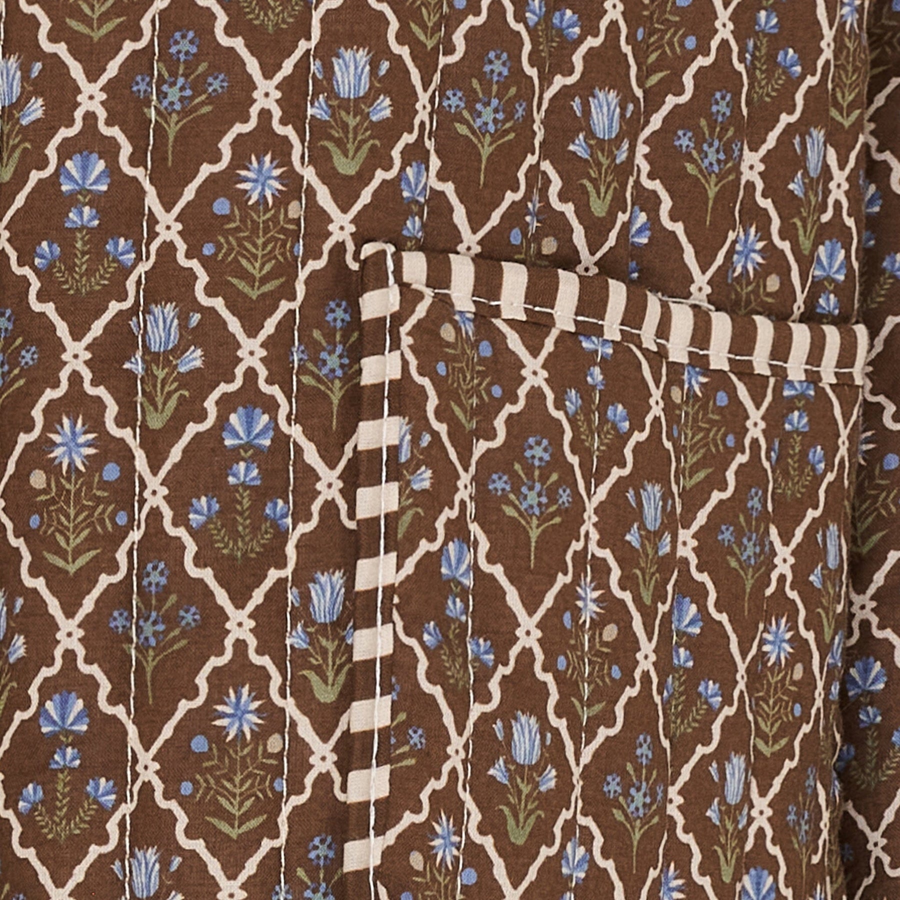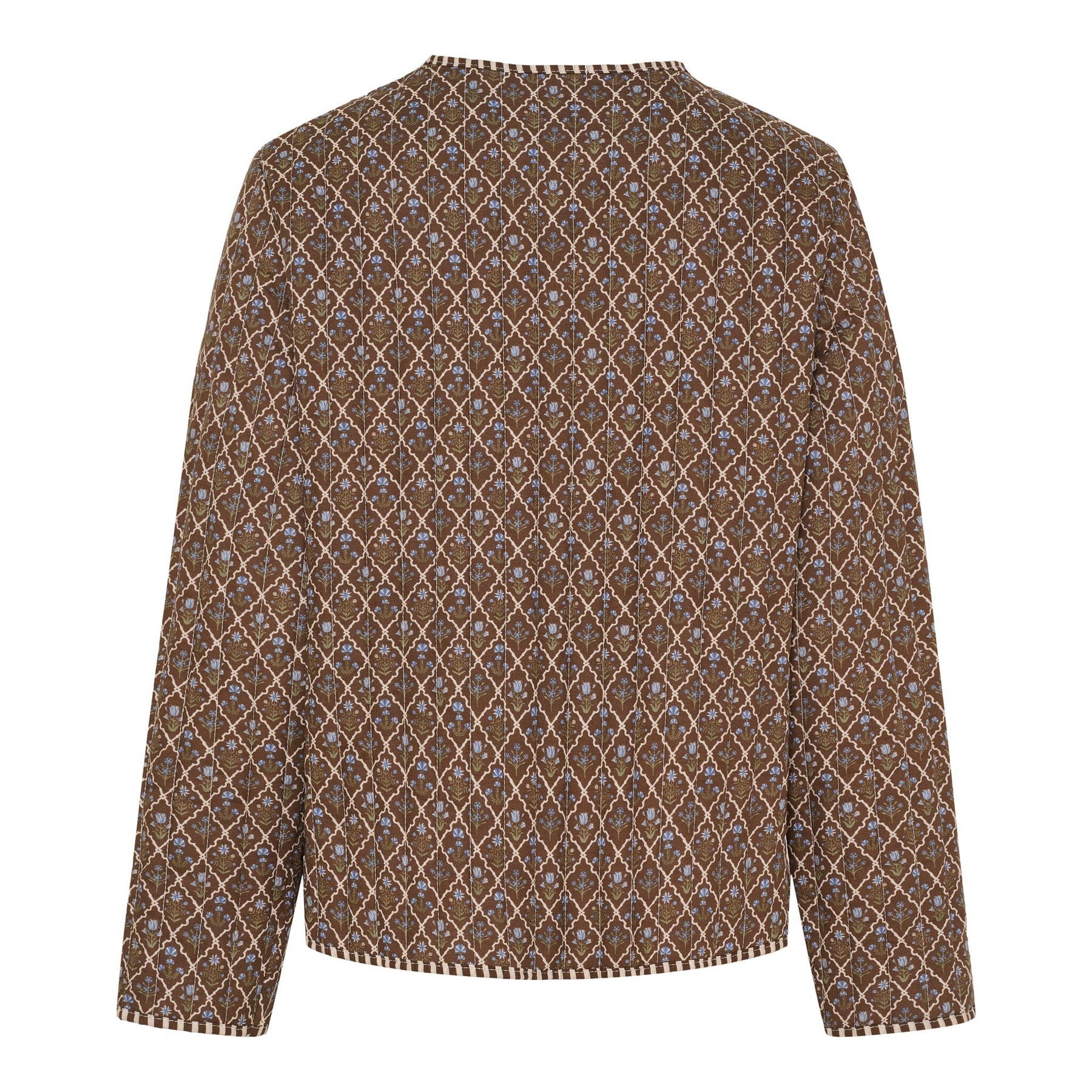 Brun jacka från Marta Du Chateau med ett karakteristiskt diamantmönster. Jackan har rund halsringning, knappar fram och två praktiska fickor. De dekorativa sömmarna ger jackan ett genomfört uttryck.