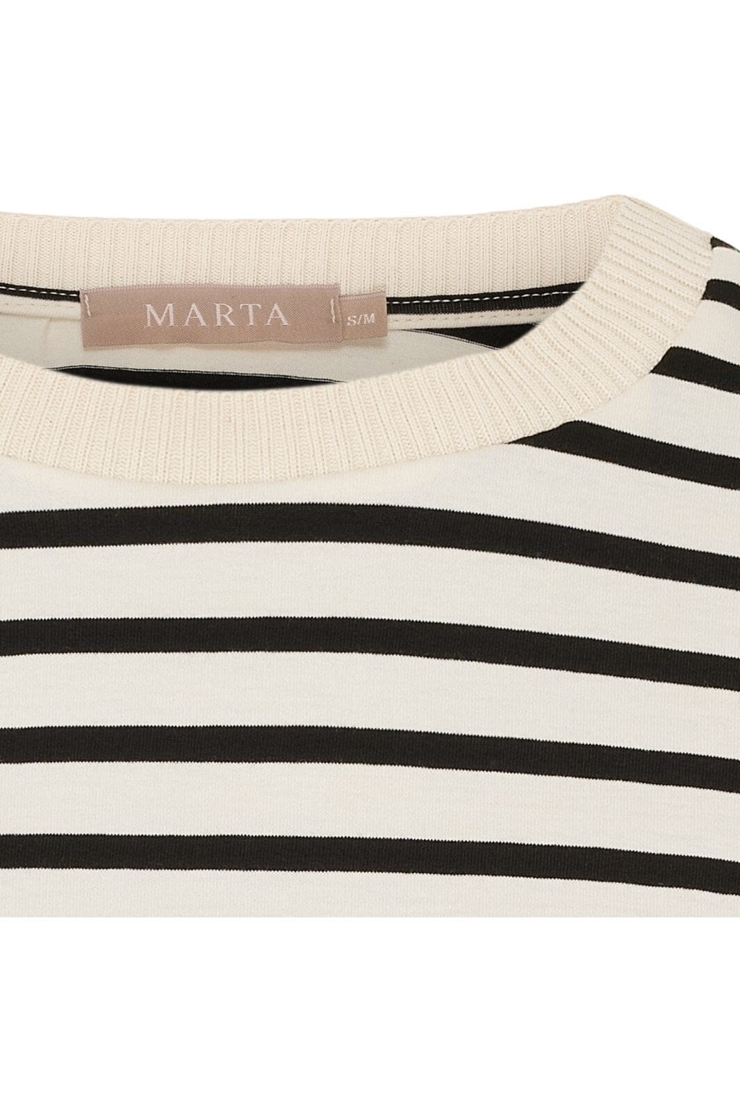 Randig t-shirt från Marta Du Chateau med beige och svarta ränder. T-shirten har en rund hals och 3/4-ärmar i en lös passform.