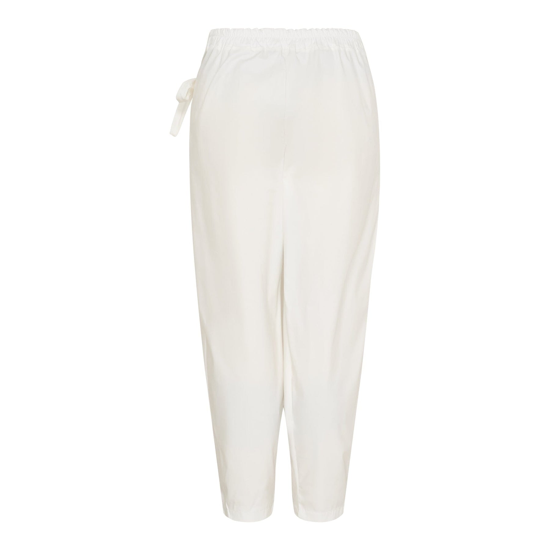 Vita byxor från Marta Du Chateau med draperad effekt och snörning i sidan. Byxorna har en lös passform och går till ankeln. Designet kombinerar komfort med ett rent uttryck.