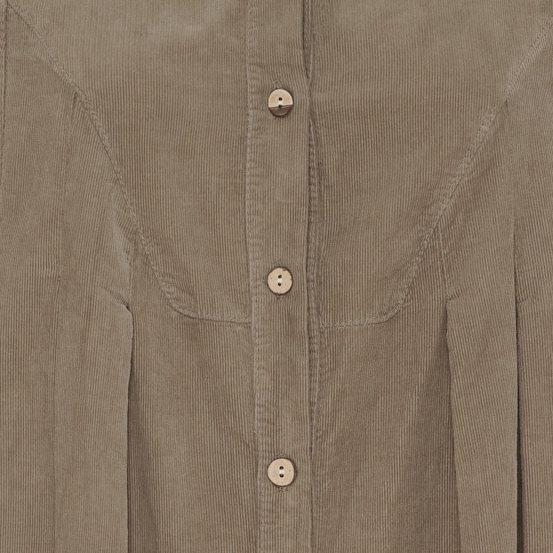 Skjortklänning från Marta Du Chateau i en grönbrun fango-färg. Den knälånga klänningen har en genomgående knappstängning framtill och uppvikta ärmar med manschetter.