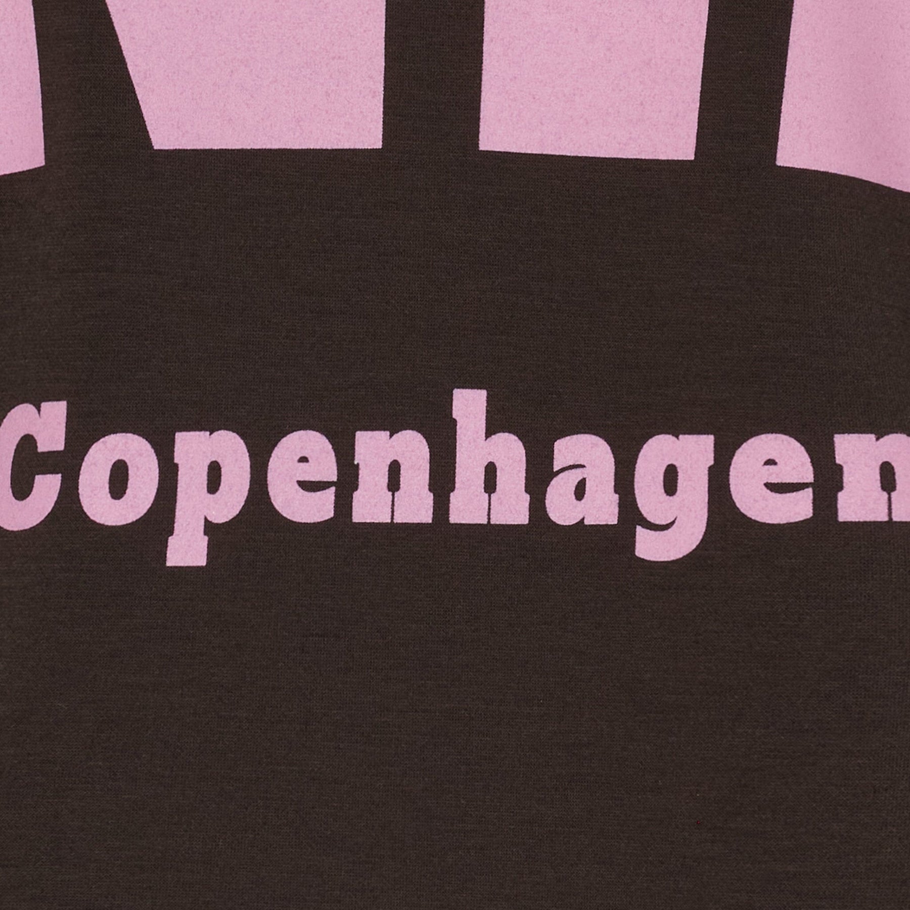 Svart sweatshirt från Marta Du Chateau med rosa Copenhagen-tryck. Den har stora bokstäver på ärmarna och framsidan i en kontrast som skapar ett urbant uttryck.