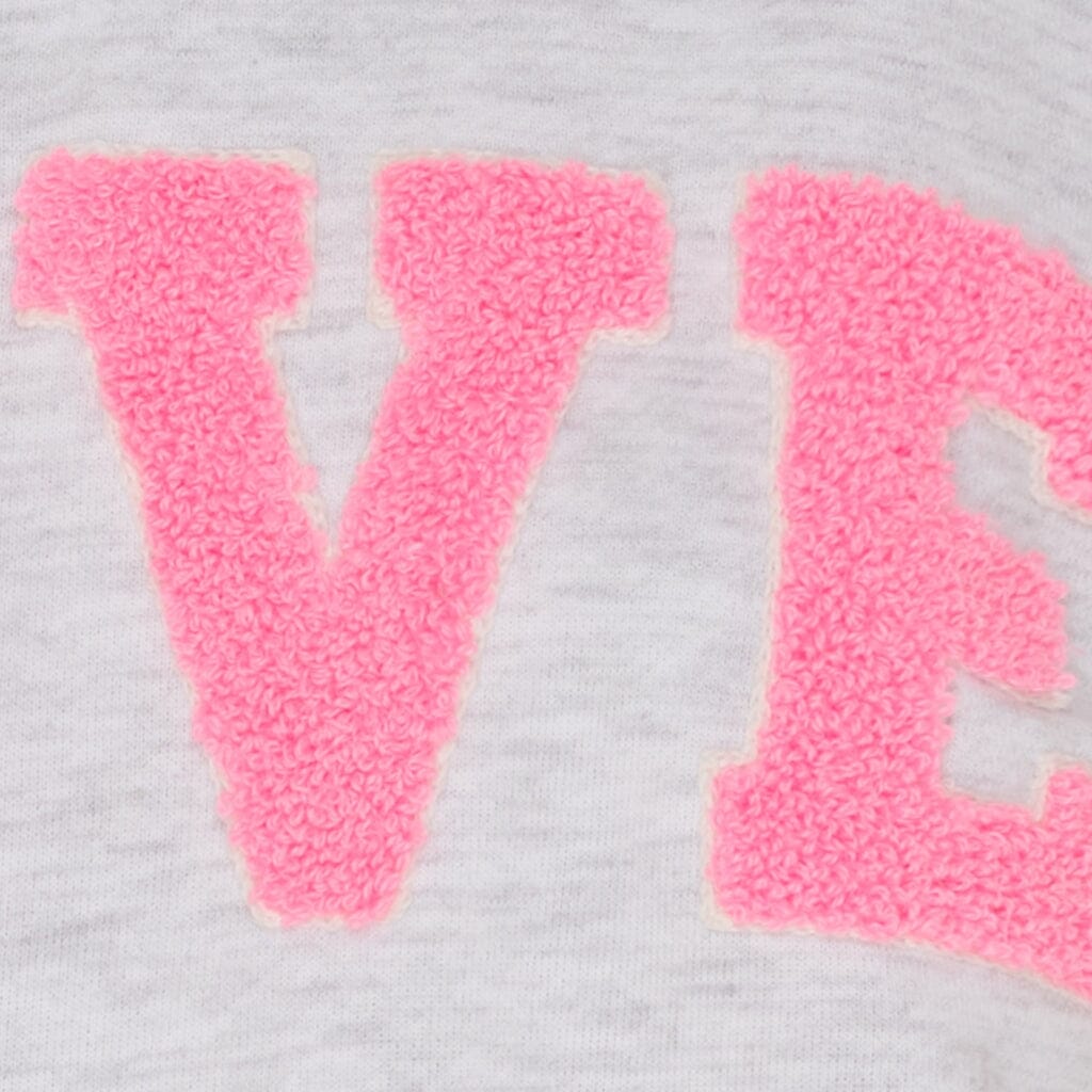 En ljusgrå sweatshirt från Marta Du Chateau med rosa LOVE-broderi på framsidan. Sweatshirten har en melerad yta och en avslappnad passform.