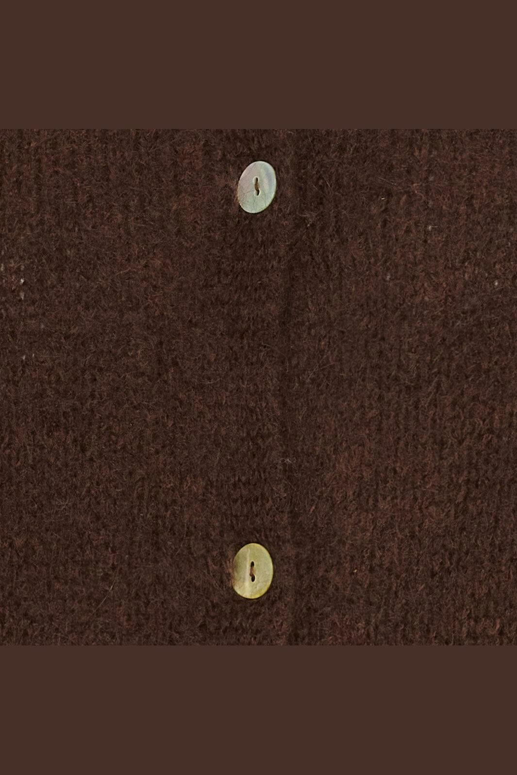 Brun cardigan från Marta Du Chateau med rund hals och knapplåsning. Stickad i en mjuk blandning av naturliga och syntetiska fibrer med 3/4 ärmar.